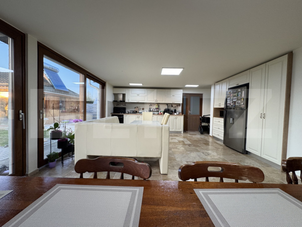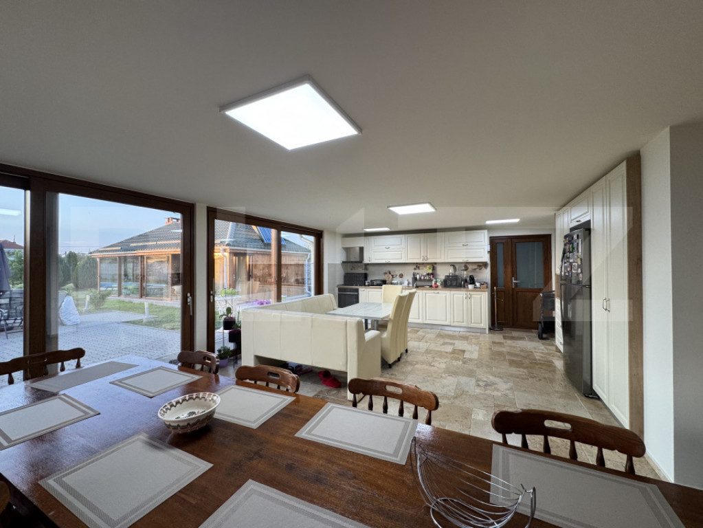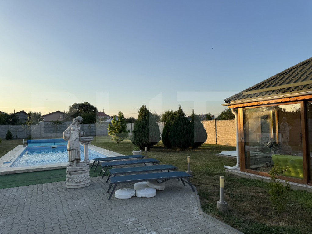 Blitz va propune spre achizitie in exclusivitate o proprietate pretabila atat pentru o familie extinsa, cat si pentru desfasurarea unui business (de tip: boutique hotel, camin de batrani, scoala, gradinita sau activitati horeca). Cu un teren imbietor de 2018 mp, cu forma dreptunghiulara, proprietatea atrage inca de la intrare prin: portile asistate electric si garajul de 83 mp construiti, (acoperit cu panouri fotovoltaice). Curtea este amenajata cu pomi, gazon si pavele, iar in partea din spate a casei, regasim intim, piscina incalzita si iluminata. Alaturi de piscina, exista o anexa cu rol de foisor inchis pregatit si pentru activitati culinare, perfect pentru petreceri si evenimente, acesta dispune de grup sanitar propriu, incapere de depozitate, iar pentru o bucurie pe tot parcursul anului, aici regasim si aer conditionat, dar si semineu. Casa are o structura solida, nefiind realizata pe tru comercializare, in ceea ce priveste structura avem urmatoarea compartimentare: parter (112 mp utili): terasa acoperita la intrare, living, o camera/ birou/ dormitor, hol, 1 baie, bucatarie cu zona de dining, camera tehnica (aici regasim 2 tipuri de centrale: pe curent, dar si pe gaze). La etaj(88 mp construiti si 66 mp utili): avem 3 dormitoare cu 2 balcoane, 1 baie si un hol, iar la mansarda: baie, hol, dormitor, living mare care se deschide spre terasa. Mansarda de 97 mp construiti si 77 mp utili, este conceputa independent energetic si are centrala proprie. Proprietatea este la asfalt si racordata la toate utilitatile. Pretabila achizitie cash, dar si credit ipotecar. Va asteptam cu drag la vizionare! Cod ofertă / ID BLITZ: P148925 Id intern: P148925