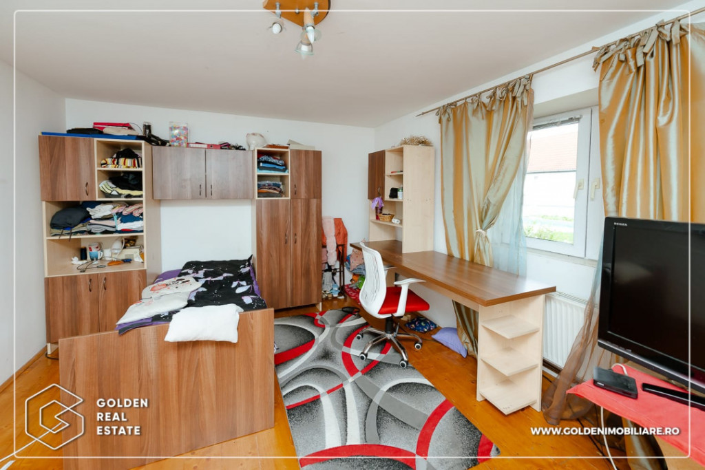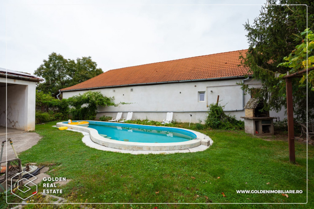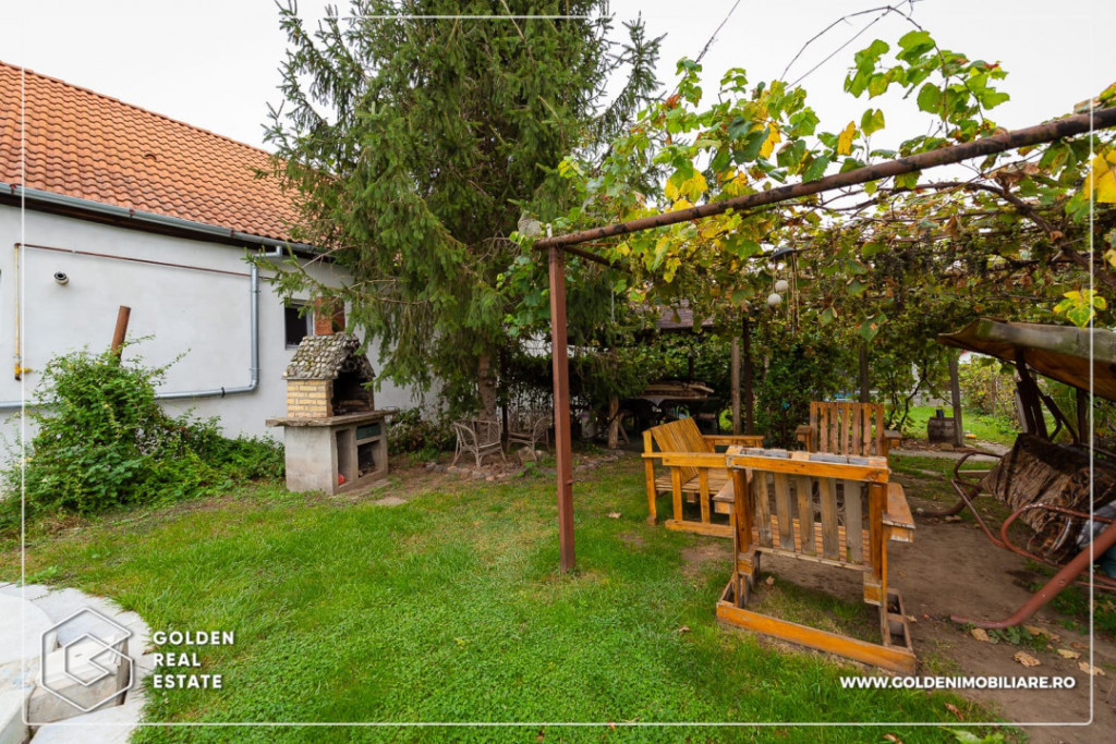 Golden Real Estate Timisoara, vă propune spre vânzare o casă spațioasă, amplasată la drumul principal, în localitatea Peciu Nou, comună aflată în plină dezvoltare, situată la 18 km de Timișoara, respectiv aproximativ 30 min de mers cu mașina până în centrul Timișoarei. Casa are o suprafață utilă de 267 mp și este situată pe un teren în suprafață de 3450 mp, cu front stradal de 27 m. Locuința este compusă din 3 dormitoare spațioase, living spațios, loc de joacă (poate fi transformat), birou, 2 băi (una nu este finisată), hol, bucătărie, cămară, cameră tehnică, debara, intrare la pod, pot, anexe, 2 garaje (unul cu 2 locuri de parcare, șanț și posibilitate de încărcare mașină electrică). Încălzirea casei se face cu centrala pe gaz. Casa mai dispune de șemineu, aparat de aer condiționat și panouri radiante. Imobilul se vinde parțial mobilat, la înțelegere cu proprietarul Locuința are un sistem de panouri foto-voltaice cu puterea de 8,64 kw. Sistemul este on grid, care alimentează și casa, având contract de prosumator. Curtea este spatioasă, cu multă verdeață, loc de relaxare, loc de joacă, piscină, terasă de luat masa, grătar. În curte și în grădină sunt alei, dar și mai mulți pomi fructiferi, smochin, zmeură de toamnă, moșmon. Preț 190.000 euro, negociabil Comision 0% Agent Golden Real Estate. Id intern: P9441