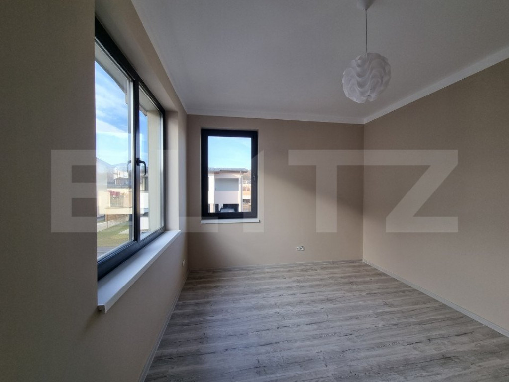 Blitz ofera spre închiriere casă individuală finalizată în 2023, situată în Dezmir, ideală pentru o familie care își dorește spațiu, liniște și acces rapid către oraș. Locuința este dispusă pe două niveluri și oferă o compartimentare eficientă: la parter se află un living luminos cu bucătărie open-space, baie și acces direct în garaj, iar la etaj sunt 3 dormitoare și 2 băi, dintre care dormitorul matrimonial beneficiază de baie proprie și dressing, plus un balcon tip logie. Casa este amplasată pe un teren de aproximativ 435 mp, cu curte amenajată cu gazon, perfectă pentru relaxare sau timp petrecut în aer liber, și dispune de garaj și 2 locuri de parcare exterioare. Se închiriază parțial mobilată și utilată, cu bucătărie complet echipată și băi finisate modern, toate prevăzute cu geam pentru ventilație naturală. Confortul termic este asigurat de centrală termică proprie și încălzire prin pardoseală, oferind eficiență și un ambient plăcut în orice sezon. O locuință modernă, bine gândită, ideală pentru cei care caută confort și intimitate într-o zonă liniștită, aproape de Cluj-Napoca. Haide la vizionare! Cod ofertă / ID BLITZ: P169910 Id intern: P169910
