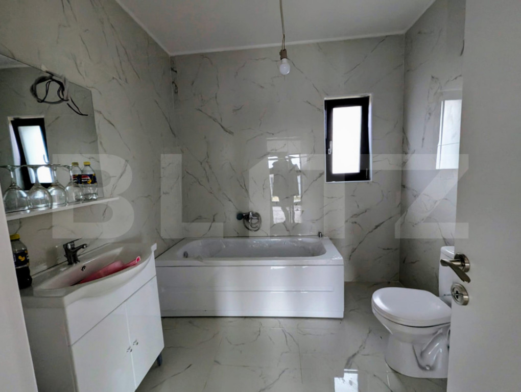 Blitz va propune o casa moderna și practica, perfecta pentru o familie sau pentru cei care isi doresc confort pe un singur nivel. Proprietatea are 85 m² utili, compartimentati eficient, si este amplasata pe un teren de 350 m², suficient pentru gradina, loc de relaxare sau spatii de joaca, cu posibilitatea de a achizitiona inca 350 m2 Compartimentare: -2 dormitoare luminoase, ideale pentru familie, birou sau camera de oaspeti -Living generos, cu acces facil catre zona de dining și bucatarie -Bucatarie care poate fi realizata deschisa sau închisa, în functie de preferintele cumparatorului -Baie spatioasa Proprietatea se afla intr-o zona linistita, cu multe spatii verzi in apropiere. Accesul catre oras este foarte facil – exista statie de autobuz la doar 20 de metri, ceea ce face deplasarea rapida și comoda chiar si fara masina. O casa eficienta, personalizabila și amplasata intr-o locatie avantajoasa – ideala pentru cei care cauta liniste, dar vor sa ramana conectati la oras. Cod ofertă / ID BLITZ: P159969 Id intern: P159969
