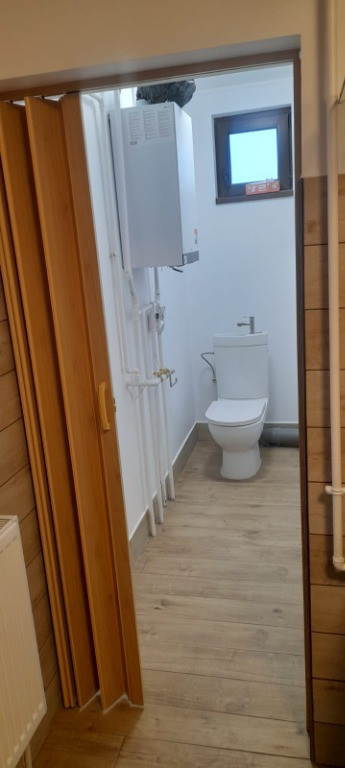Casa de inchiriat living, bucutarie, baie, baie serviciu, 2 dormitoare, 2 terase,vatra foc,garaj, beci, apa canal, put gaze, climatizoare.Totul este nou nefolosit.