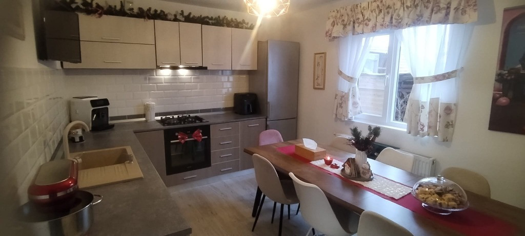 Casă P+M de vânzare, situată în centrul localității Lumina, județul Constanța, într-o zonă liniștită, ideală pentru o familie. Casa are 3 camere, bucatarie, 2 băi, hol și cămară și se vinde mobilată și utilată, gata de mutare. Bucătăria este complet utilată și dispune de frigider, plită pe gaz, cuptor electric, mașină de spălat vase, masă extensibilă pentru 8 persoane și TV. Livingul este spațios și luminos, dotat cu canapea extensibilă, mobilă și TV. Cămara este amenajată ca spațiu tehnic și de depozitare, având congelator cu sertare, mașină de spălat rufe, uscător de rufe, centrală pe gaz și spații de depozitare. Mansarda include o cameră și baie proprie, iar la parter se află a doua baie. Curtea este frumos amenajată și oferă două terase, gazon, piscină sezonieră, leagăn, grătar, pomi fructiferi (măr, gutui, cireș, piersic) și plante ornamentale precum liliac, glicină și trandafiri. Casa este dotată cu panouri solare (6 bucăți), aer condiționat, cablu TV și internet Digi, camere de supraveghere și fosă septică. Localizare excelentă: 3 minute de mers pe jos până la școală și 10 minute până la magazin alimentar și farmacie. Pentru mai multe detalii și programarea unei vizionări, mă puteți contacta telefonic.
