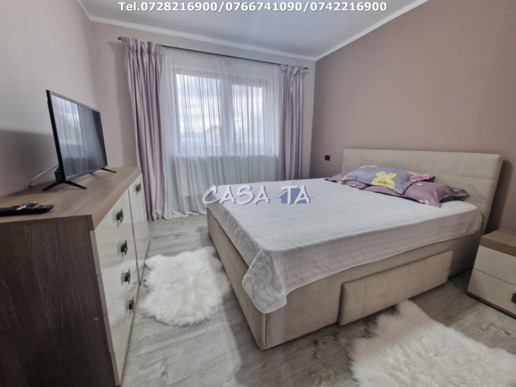 Agentia Imobiliara CASA TA ofera spre Vanzare Casa P+M, situata pe str. Ana Ipatescu. Imobilul este compus din: 3 camere + living, 2 bai, bucatarie, 2 balcoane, hol. Suprafata desfasurata este de 312 mp si teren aferent 516 mp, deschidere 23 ml. Utilitati: Apa curenta, gaze(in curs de desfasurare), fosa septica, curent electric, cablu TV, internet. Finisaje: Gresie, Faianta, Parchet, Glet/Lavabila,Scara interioara, garaj, terasa.(mansarda fiind semifinisata) , Centrala Termica de Inalta Performanta-GPL. Complet mobilata si utilata. Schimb cu apartament 2-3 camere, etaj 1/2/3 Pret: 155.000 Euro. Negociabil. Tel: 0728216900. Id intern: P1801