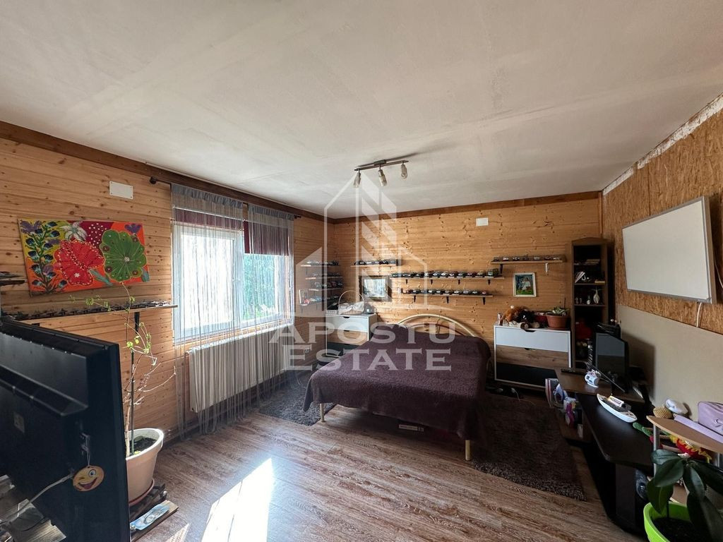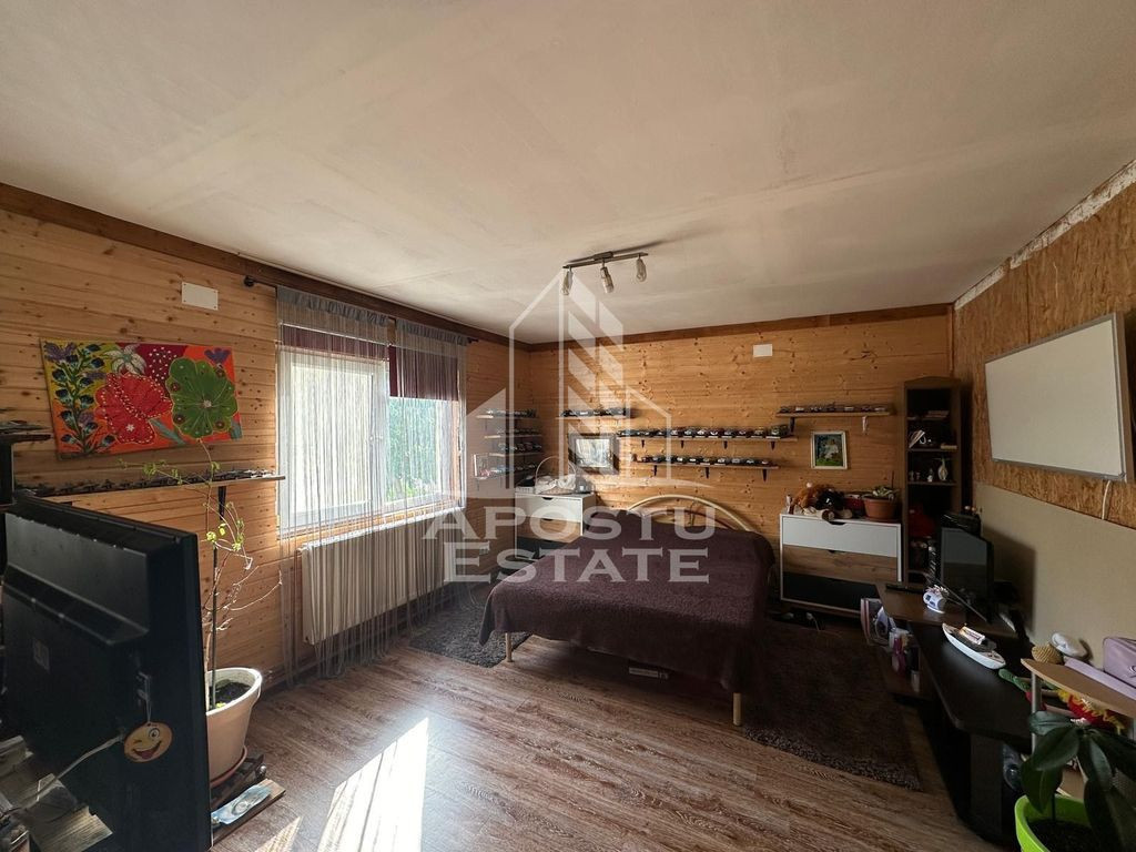 APOSTU ESTATE va prezinta spre vanzare o casa individuala cu mansarda in Dumbravita, aproape de Ikea, Timisoara si Aeroport, construita pe structura de lemn. Compartimentare parter: - hol de acces; -living mare, cu loc de luat masa; - bucatarie; - baie cu geam pentru aerisire; -camera tehnica. Mansarda: -trei dormitoare; -baie. Din living se poate iesi pe terasa din spatele casei. In curte se gasesc diferiti pomi fructiferi aflati in rod. Cartierul este linistit , civilizat si sigur. Partea de la mansarda nu este finalizata. Va invitam la o vizionare chiar astazi. Pretul este negociabil. CP2019201