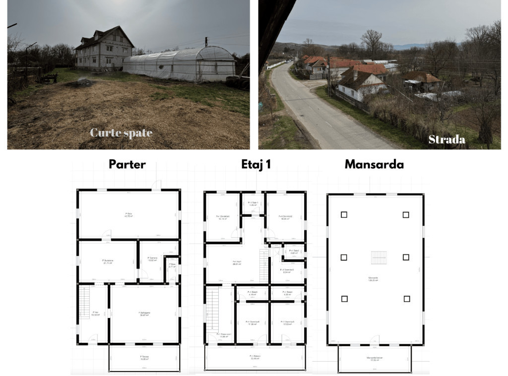 • Localizare: Sat Fărcădin, acces facil la stradă principală și secundară. La 6 km de Hațeg, 44 km de Parcul Național Retezat, 19 km de Prislop, 7 km de Biserica din Densuș. • An construcție: 1997, modernizări ulterioare • Renovări: - Tencuit interior parter – 2010 - Montat rigips și amenajat băi – 2018 • Utilități: - Curent electric 380V și 220V, panouri fotovoltaice 5,5 kW (prosumator) - Acces la canalizare și apă din rețeaua locală + puț în beci - Internet fibră optică • Structură: - BCA 25 cm, beton armat și oțel - Placă beton etaj 1, mansardă cu podea din lemn de brad - Acoperiș din țiglă - Geamuri termopan, instalație electrică din cupru • Alte facilități: - Beci (9x4,5 m) - netencuit, nu are placa de beton turnată - Solar în curte (se poate demonta la cerere) • Proprietate înscrisă în CF, cu titluri de proprietate • Imobilul necesită intervenții minore la acoperiș și într-unul dintre dormitoarele de la etajul P+1. Detaliile privind aceste aspecte pot fi observate în fotografii. Proprietatea are o suprafață totală de 1022 m², din care 435 m² sunt construiți. Pentru detalii și vizionări, contactați-mă!