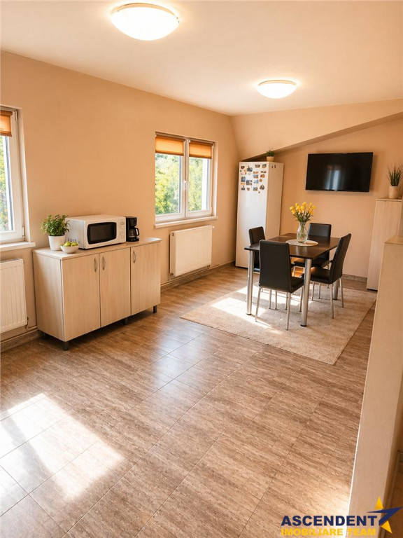 Comision cumparator 0% Ascendent Imobiliare Targu Mures este onorata sa va prezinte spre vanzare o proprietate versatila, ideala atat pentru locuire, cat si pentru activitati comerciale, spatii de birouri sau spatii dedicate copiilor. imobilul dispune de o suprafata utila de 270 mp (290 mp desfasurati) si este amplasat pe un teren apreciabil de 677 mp, pe care se regaseste si un garaj, plus inca un loc de parcare. Va invitam sa experimentati o vizionare initiala, din locatia unde va aflati, chiar acum, prin accesarea turului virtual si a filmului de prezentare: Tur virtual tridimensional proprietatea : https://my.matterport.com/show/?m=FGznBNiT1MU Film prezentare: https://www.youtube.com/watch?v=oVq4e9_nuTo Parter ndash; 2 apartamente bull; Primul este compus din bucatarie cu camara, hol spatios cu acces catre 2 camere si baie. bull; Al doilea ofera bucatarie, 2 camere, baie, terasa si acces la pivnita. Incalzirea la acest nivel este asigurata de doua centrale separate, ceea ce permite eficienta si control individual. Mansarda ndash; constructie noua (finalizata in 2019) compartimentata astfel: 2 camere, o bucatarie, living, hol, 2 bai, garderoba, terasa si pivnita separata. Incalzirea este asigurata de o centrala pe lemne, cu camera tehnica dedicata. Alte beneficii si investitii recente bull; Acoperis nou, complet schimbat, cu tigla. bull; Compartimentarea deschide oportunitatea si pentru conversia in spatiu comercial, after-school, gradinita privata, birouri sau zona de locuinte multifamiliale. bull; Curte generoasa, ce permite amenajari suplimentare. Consilier specializat pe aceasta oferta: doamna Botos Andreea Telefon/ WhatsApp: 0767 663 194. Detalii, fotografii suplimentare, precum si alte variante similare exclusive: www.ascendentimobiliare.ro . ID intern: 059433.