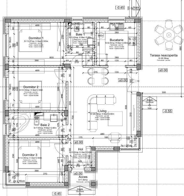 Cele 3 dormitoare sunt amenajate cu atenție pentru a oferi intimitate și confort fiecărui membru al familiei.