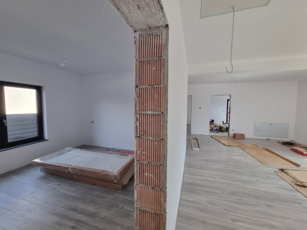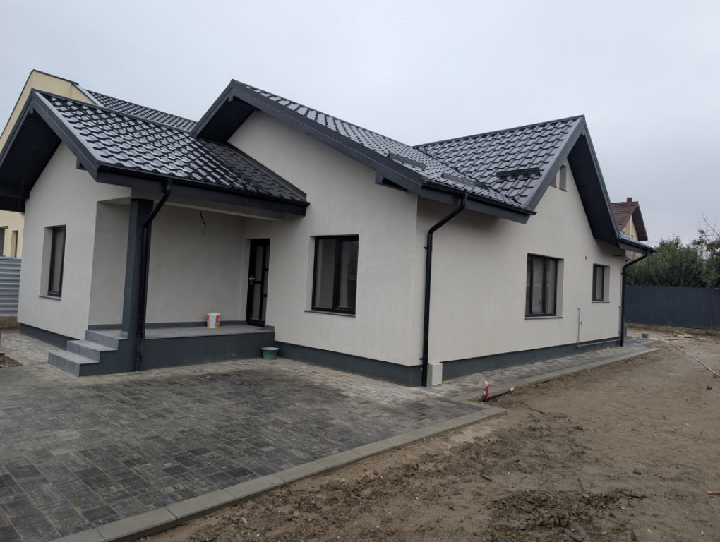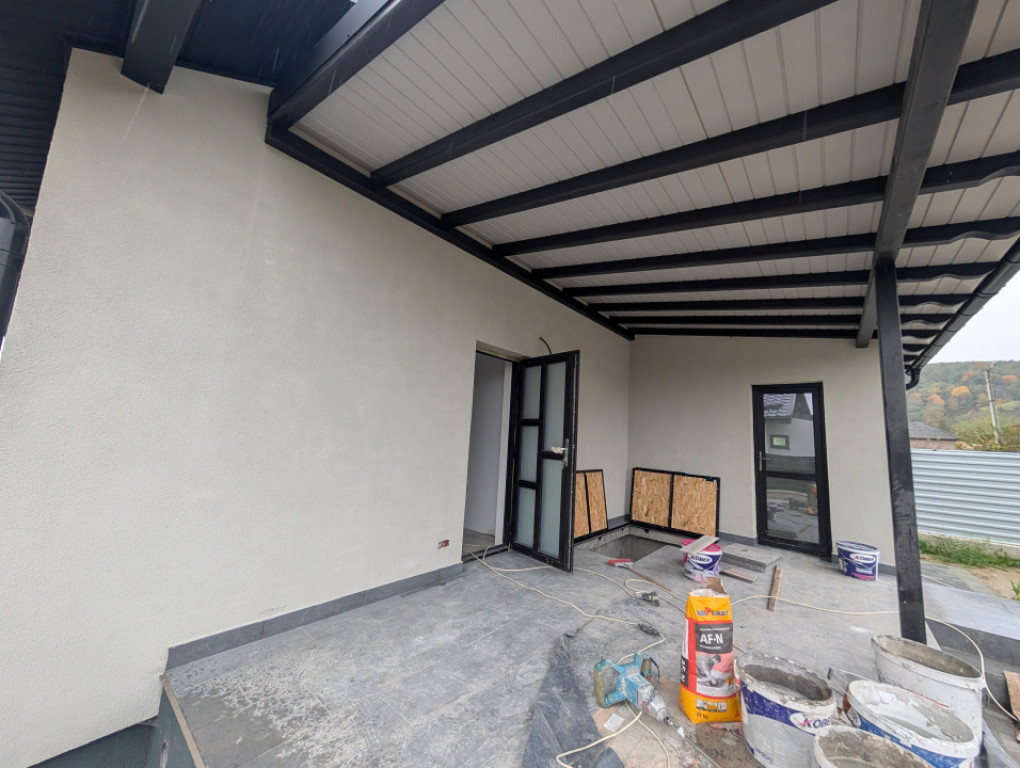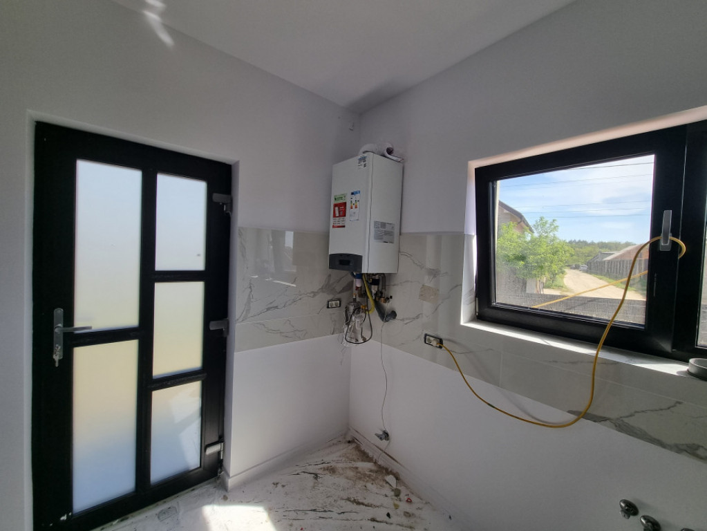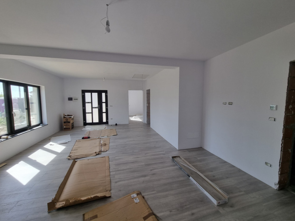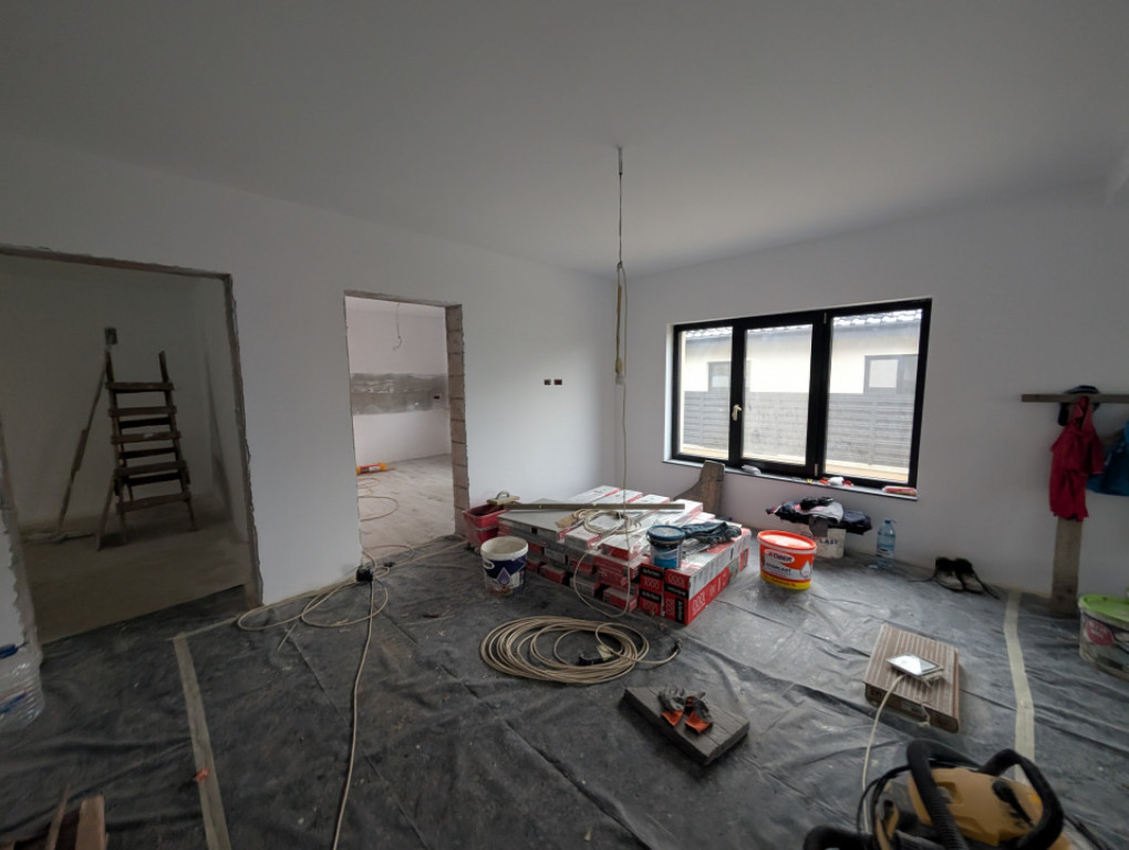 Proiect 4 case Primele 3 sunt vândute Finalizare decembrie 2025. Casa cu o Compartimentare foarte bună, living mare, geamuri mari, bucatarie inchisa. 3 dormitoare, 3 bai Terasă cu baie, beci Dormitor matrimonial cu baie proprie Cărămidă tencuita la interior și exterior Izolație fațada cu vata bazaltica și polistiren extrudat în pod pe planșeul de beton. Folie anticondens cu aluminiu sub tabla, Încălzire pardoseala. Personalizare în funcție de dorințele clientul. Preț cu TVA inclus. Comision 0% Id intern: P93971