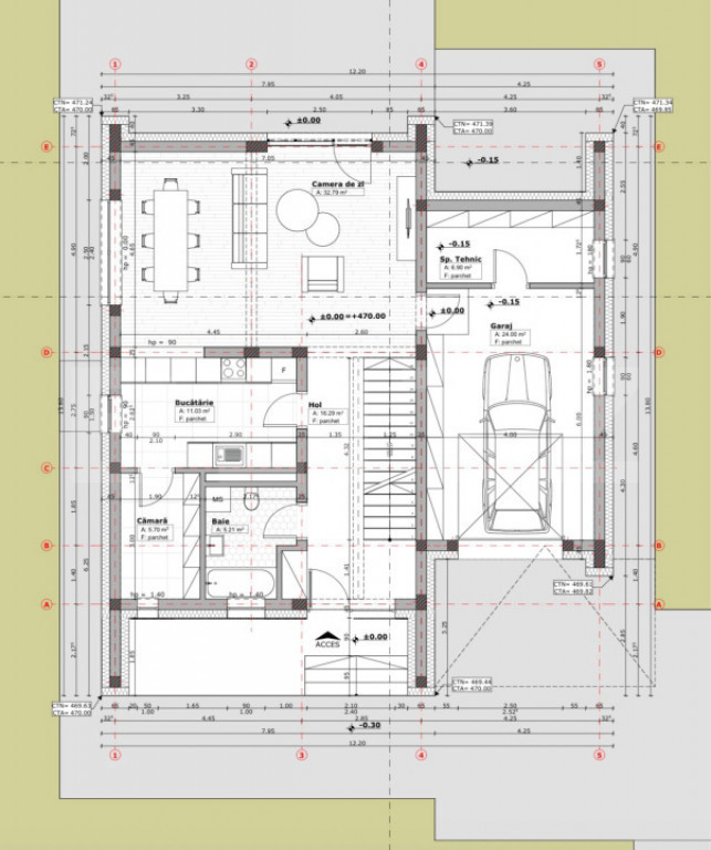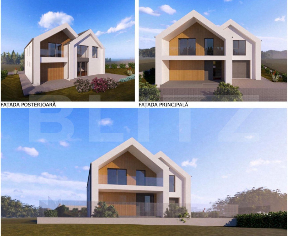 Casa premium semifinisata cu geam panoramic, garaj si teren