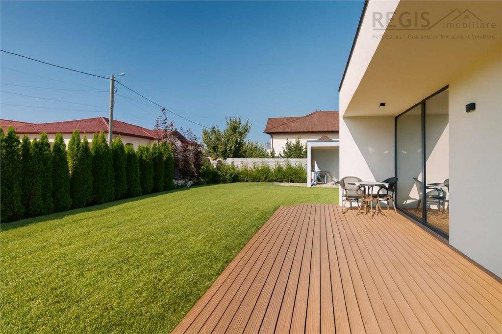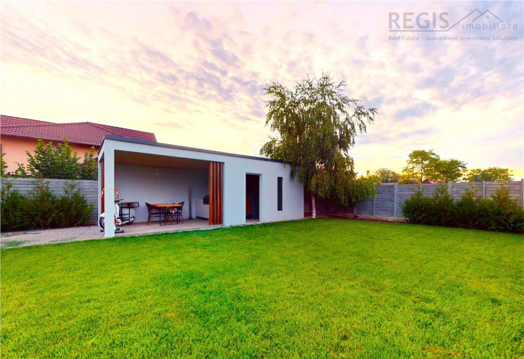 ID intern: 5975 Casa premium stil mediteranean ndash; Izvor, Brasov | teren 650 mp | finisaje moderne | complet utilata REGIS Imobiliare va propune spre vanzare o vila individuala, clasa Premium, construita in stil mediteranean, situata in localitatea Izvor, jud. Brasov, la doar 10 minute de oras si 20 de minute de Aeroportul International Brasov. Proprietatea imbina eleganta arhitecturala cu functionalitatea moderna, fiind alegerea ideala pentru cei care doresc o locuinta eleganta, eficienta energetic si pregatita pentru a fi locuita imediat. Detalii proprietate: - Suprafata utila: 130 mp - Suprafata totala: 160 mp - Teren: 650 mp - Camere: 4 (living 3 dormitoare) - Bai: 2 (aerisire naturala, una cu cada si una cu dus) - An constructie: 2022 Compartimentare: Parter: Hol de acces Living open space spatios cu semineu si zona de dining Bucatarie moderna, mobilata si utilata (posibilitate de separare) Terasa generoasa, perfecta pentru relaxare si mese in aer liber 3 dormitoare (inclusiv dormitor matrimonial cu spatiu pentru dressing) 2 bai moderne cu finisaje premium Dotari amp; beneficii: - Constructie integral din caramida cu izolatie interioara si exterioara - Incalzire in pardoseala pentru confort si costuri reduse - Tamplarie PVC de lux, geam triplu ndash; izolare fonica si termica superioara - Mobilier modern, de calitate premium, inclus in pret - Sistem de alarma cu posibilitate de conectare la supraveghere video - Curte complet amenajata, cu gazon, pavaj si sistem de iluminat exterior - Foisor din caramida cu gratar magazie depozitare - 2 locuri de parcare in curte, cu poarta automatizata Localizare: Proprietatea se afla in Izvor, Brasov, zona linistita aflata in plina dezvoltare, cu acces rapid catre Brasov si principalele puncte de interes. In proximitate se gasesc magazine, farmacii, restaurante si zone de agrement. Aceasta vila reprezinta o oportunitate rara pentru cei care doresc o locuinta premium, eleganta si complet echipata, intr-o zona linistita dar foarte aproape de oras.