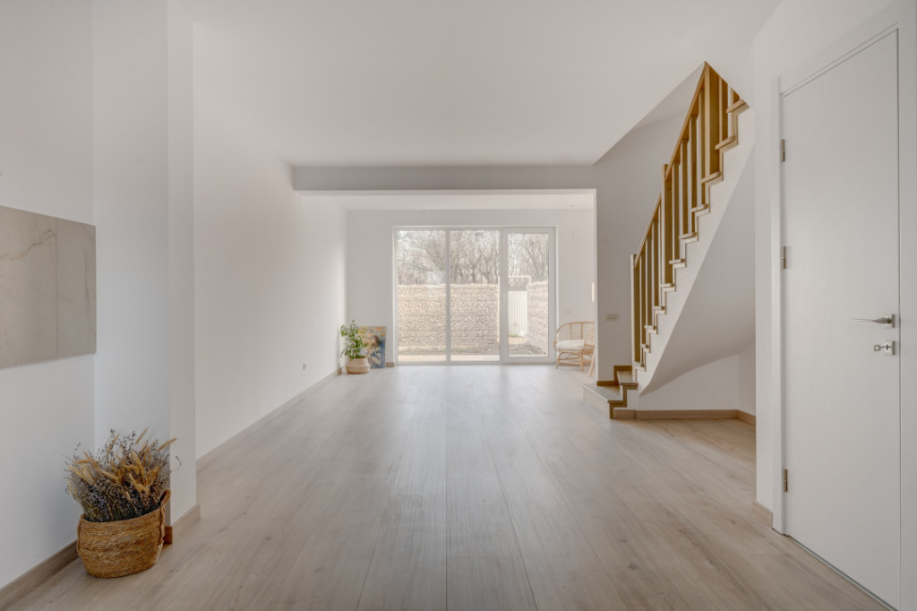 În orașul Voluntari, pe strada Școlii, în complexul imobiliar Avangarde Forest, sunt disponibile la vânzare două case alăturate dispuse pe P+1+M. Cele două case fac parte dintr-un grup de patru case înșiruite, ele fiind cele din mijloc. În fața casei se pot parca două mașini, iar în spate este o mică curte cu ieșire spre un drum din spatele complexului. Complexul rezidențial este format din 45 de unități locative și deja s-a format o comunitate. Sunt multe familii tinere cu copii, complexul este închis, sunt montate porți și bariere, astfel încât copiii se vor putea juca în siguranță. Suprafața utilă a unei case este de 144,6mp și suprafața de teren a proprietății este de 212mp. Prețul casei este de 215.000Euro (cu TVA inclus). Casa este construită din cărămidă Porotherm, are placă de beton atât între parter și etaj, cât și între etaj și mansardă, este izolată cu polistiren de 15cm pe exterior, mansarda are izolație de 20cm de vată minerală bazaltică și este foarte bine finisată la interior. Pereții comuni cu casele din partea stângă și din partea dreaptă sunt izolați cu vată minerală de 10cm. Atât încălzirea, cât și răcirea locuinței se realizează prin pardoseală, prin pompa de căldură Viessmann (Germania). Utilizarea pompei de căldură reduce facturile la încălzire și se generează căldură într-un mod mai responsabil față de mediu. De asemenea, pompa de căldură combinată cu o unitate de ventilație mecanică ajută la crearea unui sistem complet de climatizare. La etaj și mansardă sunt trase totuși și circuitele pentru aer condiționat, dacă va mai fi nevoie. Parterul casei este format dintr-o cameră de zi cu ieșire spre curte, bucătăria deschisă și o baie de serviciu. Bucătăria poate fi închisă, având fereastră proprie și suficient spațiu. Etajul este compus din două dormitoare de 15,1mp și 16,1mp și două băi. Dormitorul matrimonial are baie cu cadă alăturată, iar din hol se poate accesa cealaltă baie de la etaj, tot cu cadă. Mansarda este formată din dormitor, baie cu duș walk-in și o zonă deschisă care poate fi birou, cameră de recreere sau un al patrulea dormitor. Scara care unește cele 3 nivele ale casei este din beton cu trepte placate cu lemn și cu balustrade de lemn, ceea ce dă căldură și intimitate casei. Parchetul de calitate, ușile albe, scara placată cu lemn, amenajarea băilor cu plăci ceramice de culori neutre, montate cu atenție, formează un tot unitar. În privința utilităților, casa este conectată la curent trifazic, apă și canalizare. Ferestrele casei (Rehau și Velux) sunt orientate spre sud-est și nord-vest, așadar este o casă în care lumina naturală este prezentă pe tot parcursul zilei. La 3 minute de casă există magazin alimentar, sală de sport și teren de tenis. Pentru cumpărături mai mari, la 10 minute sunt Kaufland, Lidl, Metro și Jumbo. Accesul spre București s-a îmbunătățit datorită autostrăzii A3 și a legăturilor acesteia cu orașul. Pentru alte detalii, vă rog să mă contactați! Proprietatea este reprezentată exclusiv de TUDOR City. Comisionul este 0% pentru cumpărător. Id intern: AT12407