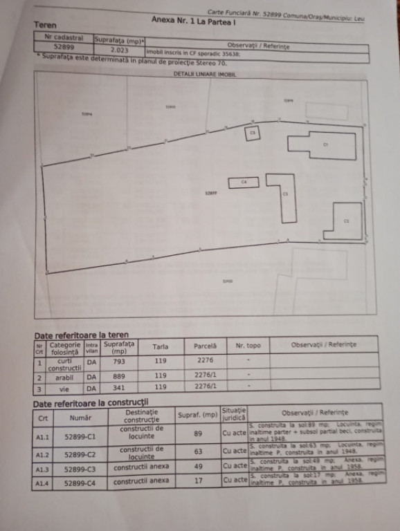 Blitz va propune spre vanzare o casa recent renovata si inca o casa boiereasca in aceeasi curte, in comuna Leu, intr-o zona foarte buna, aproape de Primarie. Casa renovata are o suprafata utila de 89mp, mobilata si utilata modern, casa boiereasca 63 mp utili+ un beci de 17 mp. De asemenea, exista in curte si o alta anexa de 49 mp care poate fi utilizata in scopul depozitarii. Cu suprafata de teren de 2023 mp si front stradal de 20 m, gospodaria reprezinta alegerea ideala pentru cei care cauta o zona linistita. Pentru o imagine completa a proprietatii, va astept la vizionare! Cod ofertă / ID BLITZ: P150399 Id intern: P150399