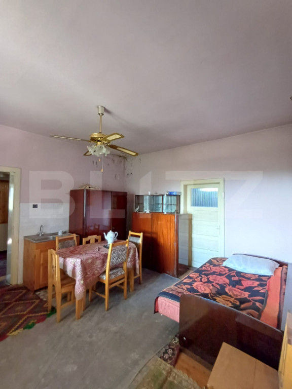 Blitz ofera spre vanzare o proprietate renovabila, impresiananta, cu 11508 mp teren intravilan in Copaceni. Proprietatea este compusa din doua proprietati distincte care pot fi achizitionate atat impreuna cat si separat. Prima proprietate este compusa din casa renovabila cu 8631 mp teren, iar cealalta din 2877 mp teren cu utilitati la front. Casa are o suprafata utila de circa 150 mp si este compusa din 2 corpuri distincte cu regim de inaltime D+P. Corp 1: demisol, cu intrare separata, format din camera tehnica si 2 incaperi utilizate ca atelier. Parterul este format din antreu, o incapere, bucatarie cu camara, hol, baie si 2 camere. Pod betonat, deschis, cu posibilitate de compartimentare, care se extinde pe toata suprafata casei. Geamuri din lemn, usi interioare din lemn, podea din lemn. Incalzirea se face cu centrala pe gaz, exista 6 focuri de gaz trase pe proprietate. Curent electric, apa, fosa septica. Terasa spatioasa, acoperita, placata cu lambriu, acoperis din tigla. Pe fundatie exista elemente decorative din marmura. Corp 2: hol cu urcare in pod, bucatarie si 1 camera. Anexe gospodaresti compuse din garaj, atelier cu groapa pentru reparat masini, magazie pentru unelte. Curtea este spatioasa, cu vita de vie, livada cu pomi fructiferi si teren agricol. Pentru a descoperi cum aceasta proprietate remarcabila poate deveni noua dumneavoastra casa sau o investitie profitabila, va invitam sa ne contactati. Nu pierdeti ocazia de a vizita si, eventual, de a achizitiona aceasta proprietare cu potential extraordinar! Cod ofertă / ID BLITZ: P156088 Id intern: P156088