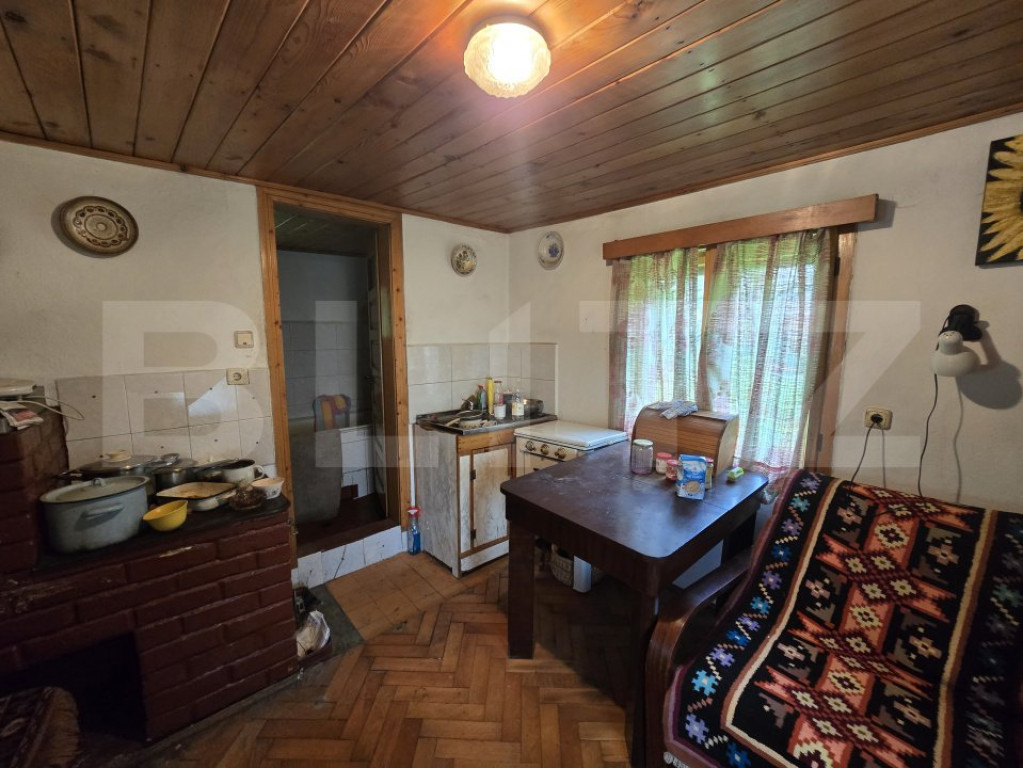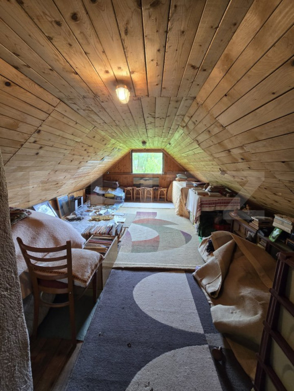Blitz va propune spre vanzare o casa de vacanta construita din lemn pe fundatie de beton, planseu din lemn, acoperis tip sarpanta din lemn cu invelitoare din azbociment ondulat. Casa este construita pe un teren de 830 mp, intravilan, accesul se face de la drumul principal printr-un teren cu acces de servitute, cu posibilitate de acces la un drum neamenajat conectat la drumul principal. Casa are aproximativ 80mp, distribuiti astfel: pivnita la subsol, la parter: o terasa tip tarnat, 1 camera, 1 bucatarie, 1 hol si o baie. Din baie se face accesul la mansarda, unde avem o camera mare de aproximativ 30 mp. Casa necesita renovare. Pe proprietate mai regasim inca o casa de 16 mp construiti, in care avem un hol, 1 camera si un spatiu de depozitare. Utilitati: curent electric, apa, fosa septica. Incalzirea se face cu soba teracota pe lemne. Contactați-ne pentru mai multe detalii sau pentru a programa o vizionare! Cod ofertă / ID BLITZ: P145594 Id intern: P145594