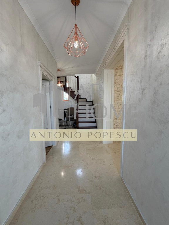 Vanzare casa 5 camere, in Paulesti, la 10 minute de Ploiesti. Imobilul se afla pe o strada privata, fara trafic auto, cu view asupra orasului, avand ca vecinatatati Mega Image, Piata Artizante, gradinita, after school, parc etc. Este construit in anul 2019 cu fundatie de beton, structura pe cadre de beton, peretii din caramida Porotherm inclusiv cei de compartimentare interioara, placa de beton, tencuit la interior si izolat termic la exterior cu polistiren de 10 cm EPS 80. Acoperisul este din tabla de tip Lindab izolat cu vata bazaltica de 20 cm, folie anticondens si rigips. Amprenta casei este de 119,7 mp, suprafata construita desfasurata 250 mp, suprafata utila 160 mp compartimentata astfel: Subsol: 2 camere; Parter: hol, living, bucatarie, terasa, birou/ dormitor, baie si casa scarii; Etaj: 3 dormitoare, baie si balcon; Terenul are o suprafata de 635 mp, deschiderea stradala de 38,84 ml, adancimea 15,73 ml. Dotari exterioare: teren imprejmuit cu gard, alei auto si pietonale pavate cu dale Semmerlock, gazon, sistem de irigatie, anexa alcatuita din zona de gratar, baie si spatiu de depozitare, terasa placata cu ceramica de exterior si acoperita cu tabla, vopsea decorativa, glafuri exterioare din granit, usa intrare din lemn stratificat. Dotari interioare: tamplarie PVC cu geam termopan, glafuri din granit, usi interioare din lemn stratificat de tei, centrala termica proprie, incalzire in pardoseala parter/ etaj, pardoseli placate cu marmura pe goluri, living si bucatarie, parchet laminat in camere, ceramica Delta Studio in bai, plinta din PVC, vopsea lavabila, scara de beton placata cu lemn stratificat, balustrada interioara din lemn etc. Utilitati: apa, lumina, gaz, fosa septica. Se vinde partial mobilata si utilata la pretul de 249000 euro.