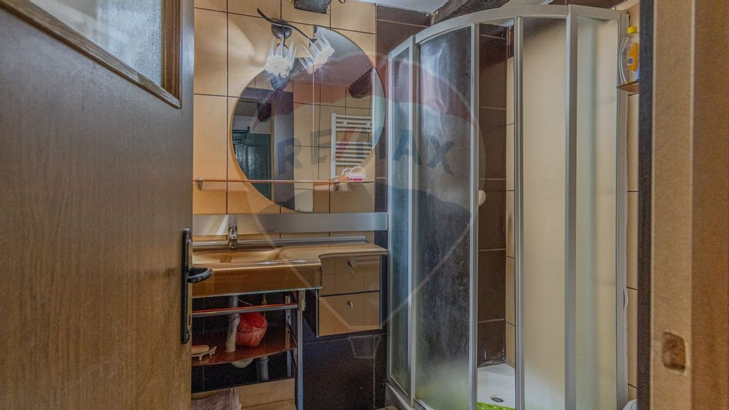 - apartament cu terasa din lemn, hol de acces catre 3 dormitoare (cu vedere spre strada principala si inspre curte), minibucatarie open space si baie cu dus, pivnita ;