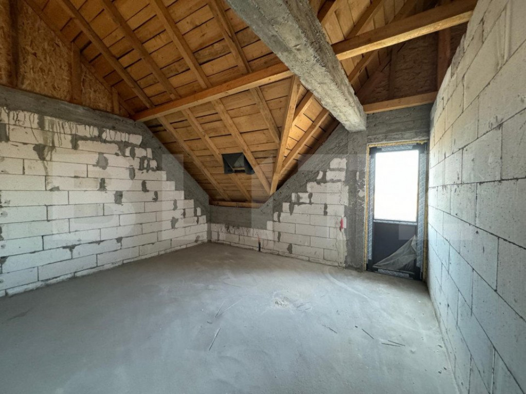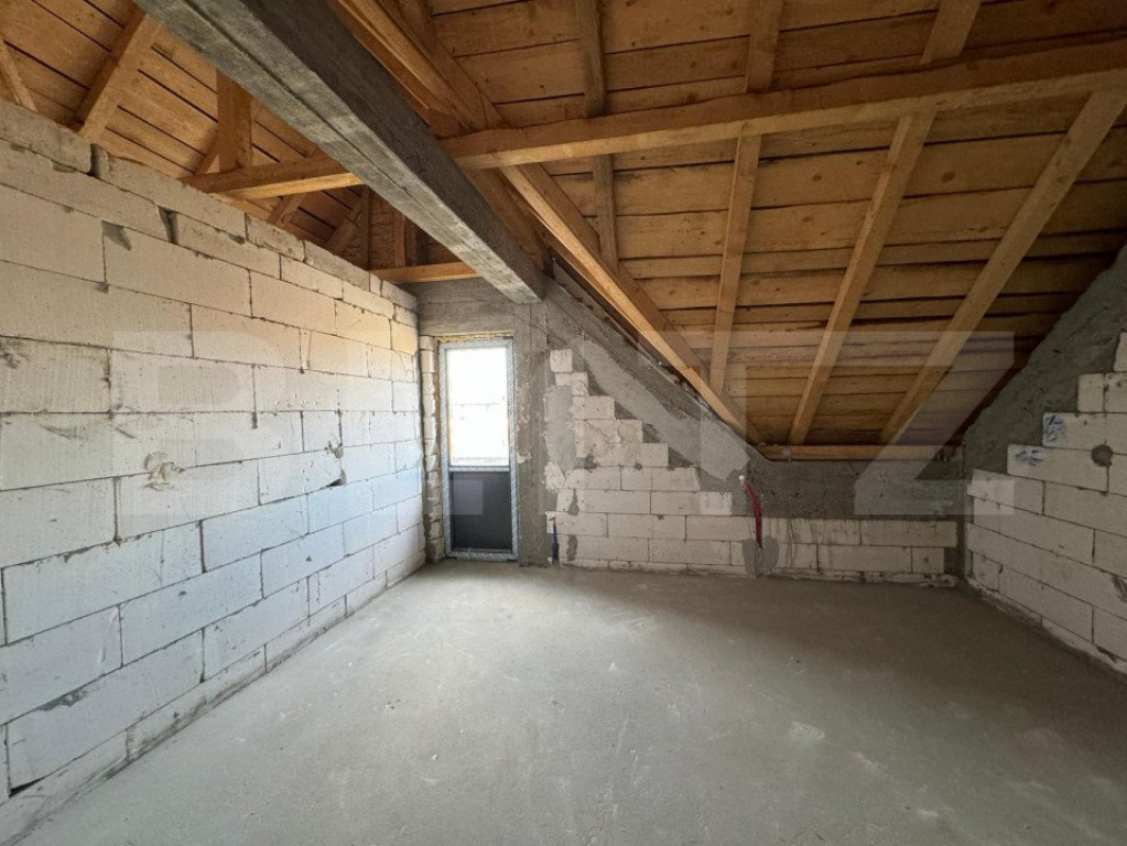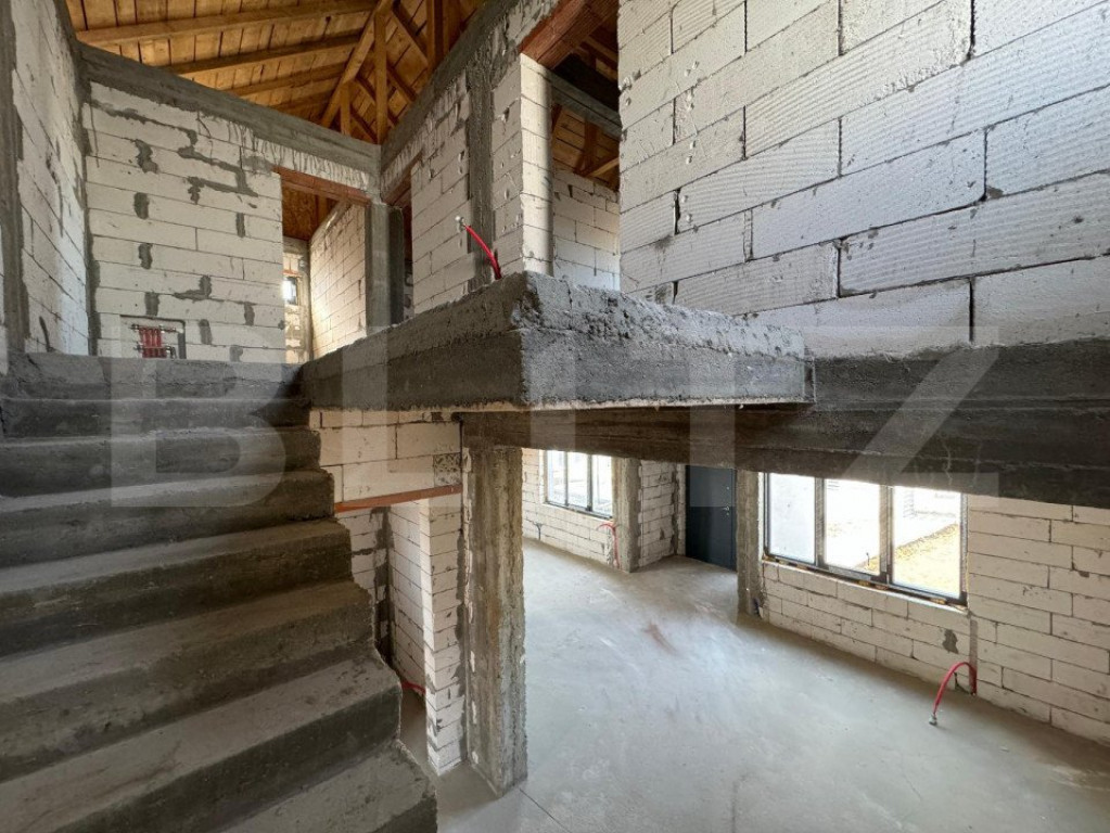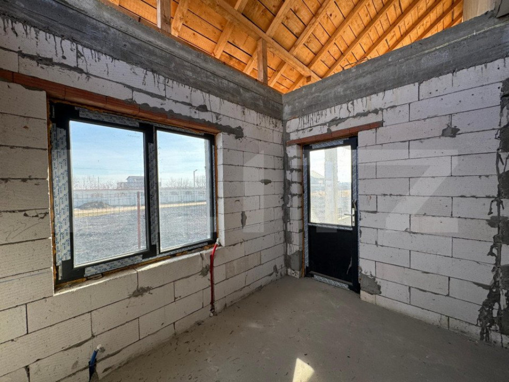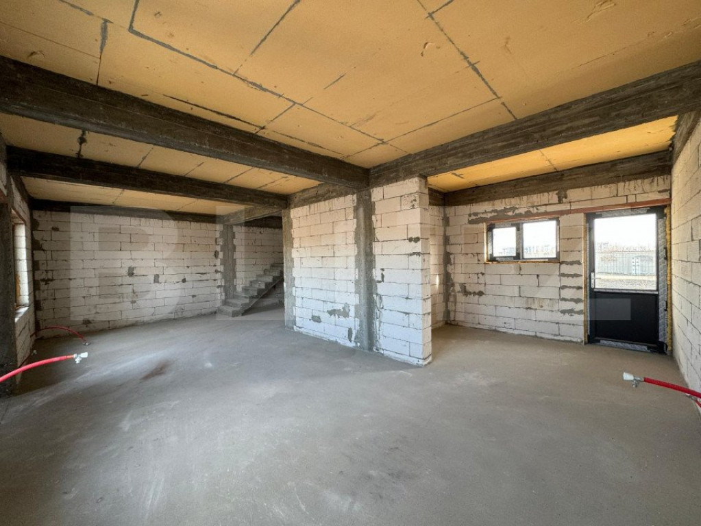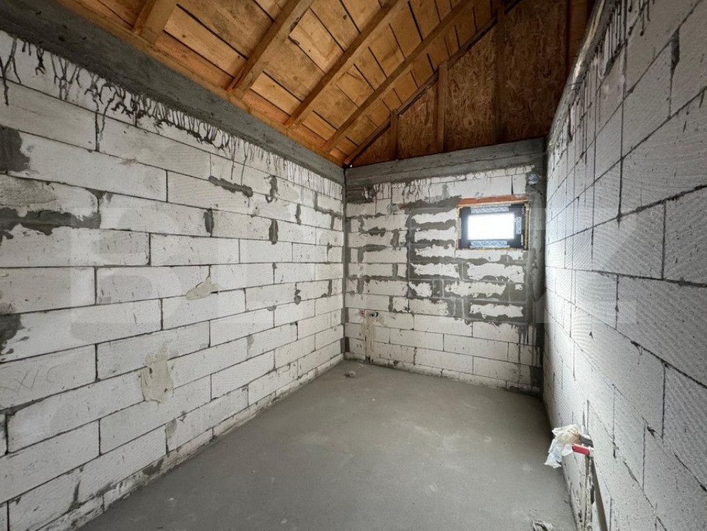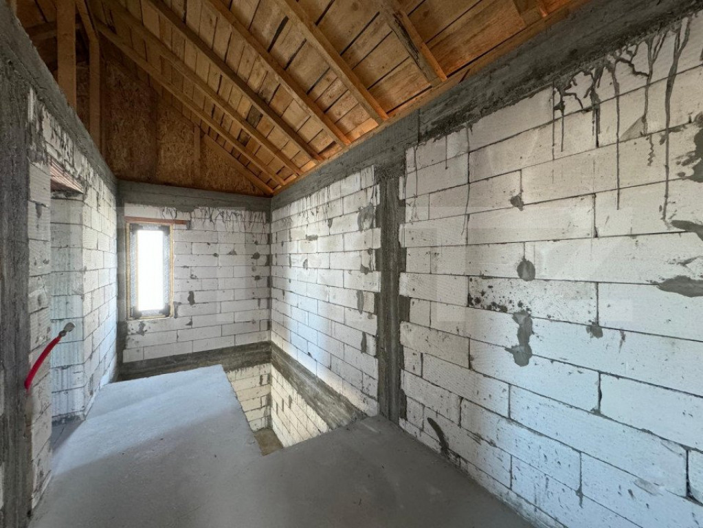 Casă semi-finisată P + M, 110 mp utili, teren 339 mp, Piel