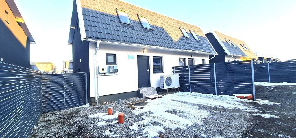 Agentia imobiliara VIP Imob propune spre cumparare o casa tip duplex in complexul rezidential Valea cu Flori Residence 8 situat in cartierul Izvor. Casa este finalizata si intabulata, cu predare imediata. Se vinde mobilata si utilata conform foto, este dotata cu aer conditionat, si are instalat un sistem de panouri fotovoltaice de 5.2 kw cu inverter Huawei, ceea ce duce costuri de intretinere reduse. Imobilul este constructie din lemn, cu acoperis din tabla marca Bilka, cu termoizolatie cu polistiren de 10 cm la exterior, vata minerala de 20 cm la interior, vata minerala de 20 cm sub acoperis. Casa mai dispune de urmatoarele dotari: incalzire cu pompa de caldura aer-apa marca Ferolli de 8kw si radiatoare + incalzire electrica la parter pentru confort sporit, ferestre de tip termopan marca Salamander cu 3 foi de sticla si 5 camere cu feronerie Roto, bai mobilate si utilate, parchet, gresie, faianta, apa, curent electric, fosa septica individuala. Compozitie: 4 camere ~ parter: camera de zi + bucatarie + hol, baie cu dus, terasa; mansarda: 3 dormitoare, baie cu cada, hol ~ cu o suprafata utila de 90.00 mp terasa de 16.00 mp acoperita si dispune de un teren de 220.00 mp. Facilitatile zonei: mijloace de transport in comun, farmacie, magazine alimentare, medic de familie, cabinet veterinar, restaurant, balon fotbal, frizerie/coafor, etc. Pret: 135.000 euro negociabil. Se accepta credit bancar. Comision: 0%. Pentru mai multe detalii si vizionari: 0785 025 025 Claudiu Blaj.