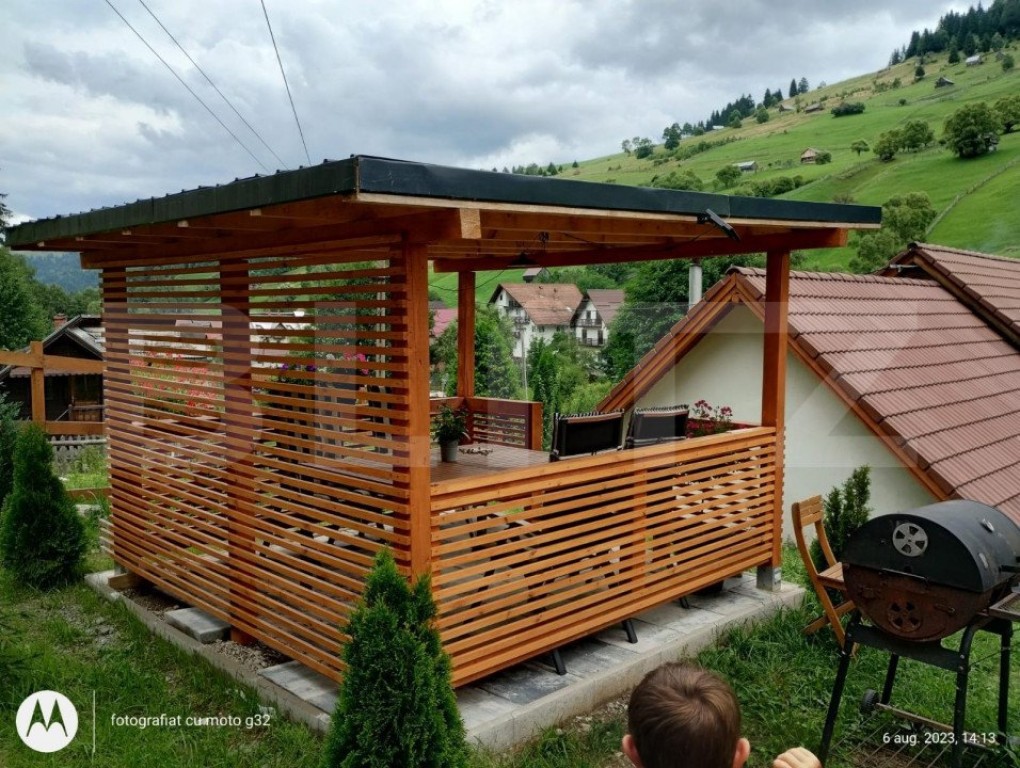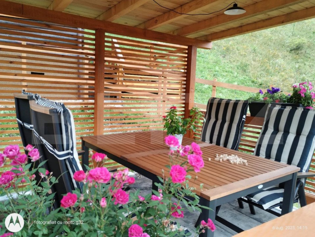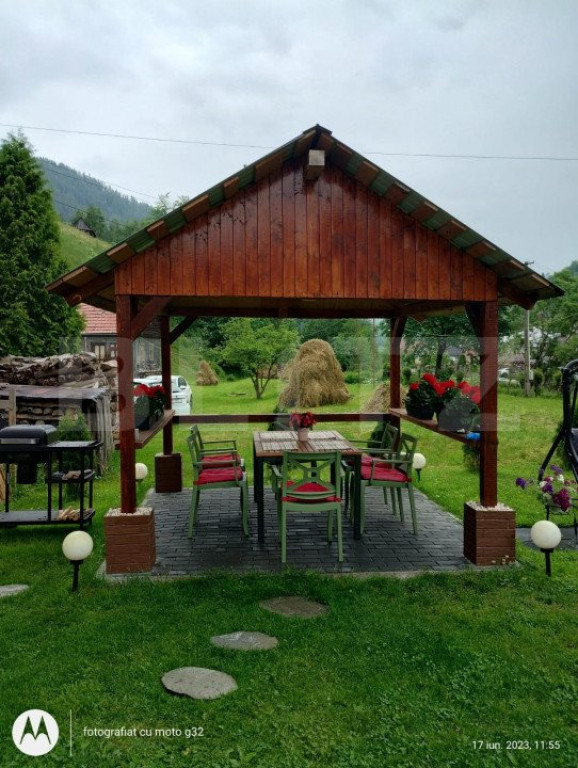 Blitz vă prezintă o oportunitate unică de a achiziționa o proprietate deosebită, pe malul râului, perfectă pentru cei care își doresc să trăiască în mijlocul naturii, într-un cadru pitoresc și autentic, dar și o sursă sigură de venit. Această proprietate impresionantă cuprinde atât o pensiune elegantă, cât și o casă spațioasă, oferind un spațiu generos și calitate deosebită a finisajelor. Caracteristici cheie ale proprietății: Pensiune elegantă: cu un design rafinat și un decor sofisticat, pensiunea reprezintă inima acestei proprietăți. La parter, veți găsi un living primitor, o bucătărie complet utilată, o baie modernă și o debara practică. Toate aceste spații au fost gândite pentru a oferi o experiență deosebită oaspeților dumneavoastră. Dormitoare spațioase: etajul pensiunii este dedicat odihnei și relaxării. Aici, veți descoperi două dormitoare elegante, fiecare având baie proprie. Fiecare detaliu a fost atent ales pentru a crea un mediu liniștit și confortabil. Apartament independent: proprietatea dispune și de un apartament separat, care include o bucătărie complet echipată și o baie privată. Acesta oferă opțiuni nelimitate, de la spațiu pentru oaspeți, până la spațiu de lucru sau locuință pentru membrii familiei. Curte generoasă: cu un teren spațios de 970 mp, veți avea o curte generoasă pentru a vă bucura de natură și a petrece momente prețioase în aer liber în cele 2 foișoare. Spațiul vă oferă posibilitatea de a crea grădini minunate, zone de relaxare și de a vă bucura de peisajul împrejurimilor. Calitate superioară a finisajelor: atât pensiunea, cât și casa, au fost finisate cu materiale de înaltă calitate și atenție la detalii. Fiecare element reflectă un nivel înalt de artizanat și stil, asigurând o experiență de locuire și ospitalitate fără compromisuri. Conexiune cu natura, fără a compromite confortul: această proprietate oferă un echilibru perfect între viața modernă și frumusețea naturală. Veți putea să vă bucurați de liniște și peisaje magnifice, fără a renunța la comoditățile și facilitățile de zi cu zi. Această proprietate reprezintă o șansă deosebită de a investi într-o viață autentică și plină de frumusețe naturală, fără a sacrifica confortul și stilul. Pentru mai multe informații sau pentru a programa o vizionare, vă rugăm să ne contactați. Cod ofertă / ID BLITZ: P90624 Id intern: P90624