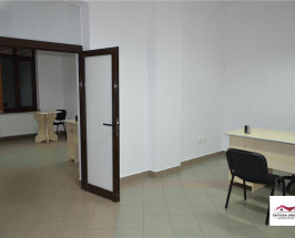 La parter de afla: trei spatii comerciale, doua birouri, un vestiar, o baie si un hol.