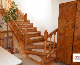 Accesul la etaj si la mansarda se face pe o scara interioara de lemn masiv din stejar.