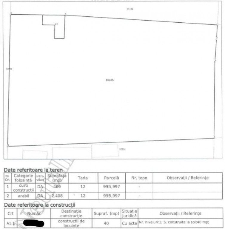 Se vinde prin licitatie publica cota parte din dreptul de proprietate de 6/16. Adresa imobil: Strada Caisului , sat Mihai Bravu, com. Victoria, jud. Braila, Cvartal 12, Parcele 995, 997 Suprafata construita desfasurata 40 mp Caisului este o strada asfaltata, cu dublu sens, ce se conecteaza la DJ211B si strada Principala. Proprietatea beneficiaza de un teren in suprafata de 2.877 metri patrati, Conform documentatiei cadastrale suprafata de 469 mp este incadrata in curti constructii, suprafata de 2.408 mp este incadrata in arabil. Proprietatea are front public de 44,4 metri la strada Caisului. Relieful proprietatii este plat, iar forma este dreptunghiulara. Proprietatea este imprejmuita cu gard din lemn. Conform informatiilor obtinute, proprietatea a fost edificata in jurul anilor 1960. Constructia este locuinta, cu regim de inaltime parter. Aspectul imobilului, cel exterior se prezinta intr-o stare precara/degradabila. Solutia constructiva aferenta imobilului consideram ca este din paianta. Cladirea este prevazuta cu acoperis tip sarpanta din lemn, invelita cu tabla. Tamplaria exterioara este realizata partial, din tocuri din lemn si geamuri simple. Imobilul beneficiaza de utilitatile prezente in zona.