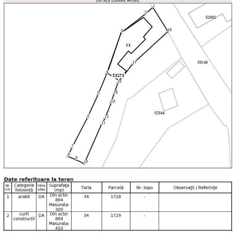 Licitatie publica casa si teren - Proprietate imobiliara de tip rezidential formata din : - teren intravilan in suprafata totala de 710 mp(410 mp- curti constructii; 300 mp-arabil) pe care se afla edificat: - C1- locuinta Ac= 213 mp; Com. Homocea ,Sat Homocea, T 34, P 1728 , P 1729, jud. Vrancea Terenul aferent proprietăţii de evaluat este situat în intravilanul comunei Homocea, sat Homocea . Suprafaţa real masurată este de 710 mp din care: 410 mp- curti constructii; 300-arabil, conform actelor, suprafeţe rezultate din măsurătorile efectuate. Terenul este in plan drept si este imprejmuit cu gard din beton cu fier forjat si porti din fier forjat. Terenul are o forma neregulata si are o deschidere de 13 ml. Terenul proprietăţii de evaluat este racordat la energie electrică si apa. Terenul nu este traversat de nici un curs de apă. Gradul seismic al zonei este de 8. Terenul este ocupat cu construcţiile C1- Locuinta si C2- locuinta(C2 nu face obiectul acestei vanzari). Descrierea imobilelor Construcţia C1 cu destinaţia de locuinta având o suprafaţă desfăşurată de 213 mp . Accesul către imobil se face direct din drumul comunal, drum acoperit cu piatra. Utilităţile aferente existente pe amplasamente sunt: energie electrică si apa. Construcţia din incinta în cauză este de tipul locuinta cu o suprafaţă desfăşurată de 213 mp şi o suprafaţă construită la sol de 213mp. Funcţiune: clădirea a fost proiectată cu destinaţia locuinta. Starea tehnică şi comportamentul în timp Din inspecţia efectuată asupra construcţiei la exterior, s-au constatat următoarele: pereţii exteriori prezintă degradări; acoperisul de tip sarpanta din lemn si învelitoarea este formată din tabla; finisajele exterioare satisfacatoare; tâmplăria exterioară: Termopan; instalaţiile electrice nu s-au putut viziona. Construcţia C2 cu regim de inaltime P+1 nu face obiectul acestei vanzari