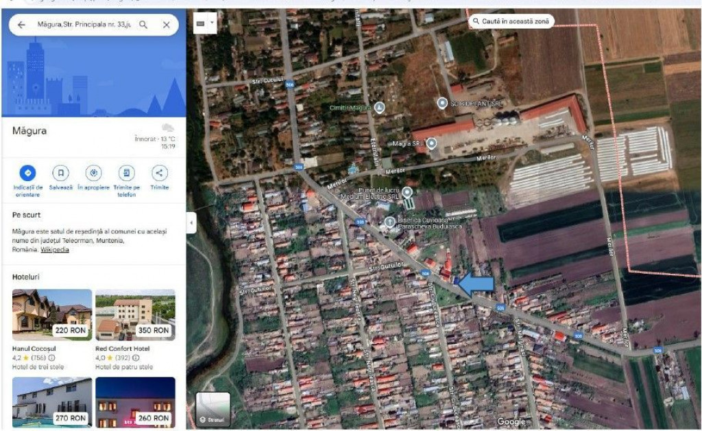 Casa si teren licitatie publica Loc Magura , Str. Principala, Tarla 21, Parcela 1037, 1038, Judetul Teleorman. Format din suprafata de 400 m.p. teren Constructiile amplasate pe acesta, respectiv constructia C1 , cu destinatie de locuinta din caramida ,acoperita cu tigla, compusa din 4 camere si bucatarie , edificata in 1984 avand suprafata construita de 96 m.p., suprafata utila estimata de 170mp ConstructiaC2 -anexa S construita la sol 68 mp,S construita desfasurata 68,mp. Regim inaltime P si P+1 Utilitati: Apa si electricitate in zona Deschidere 15,86 ml.