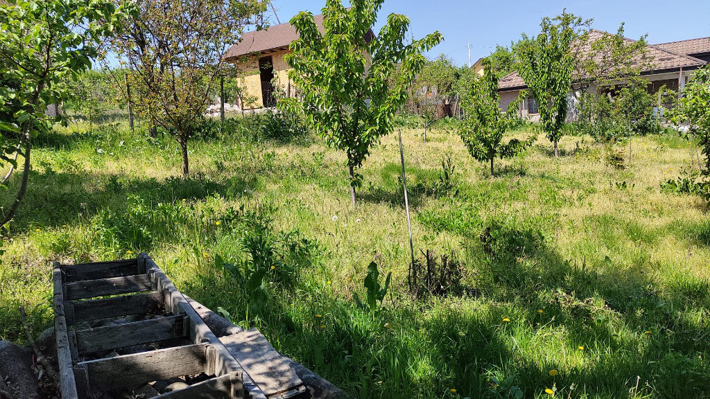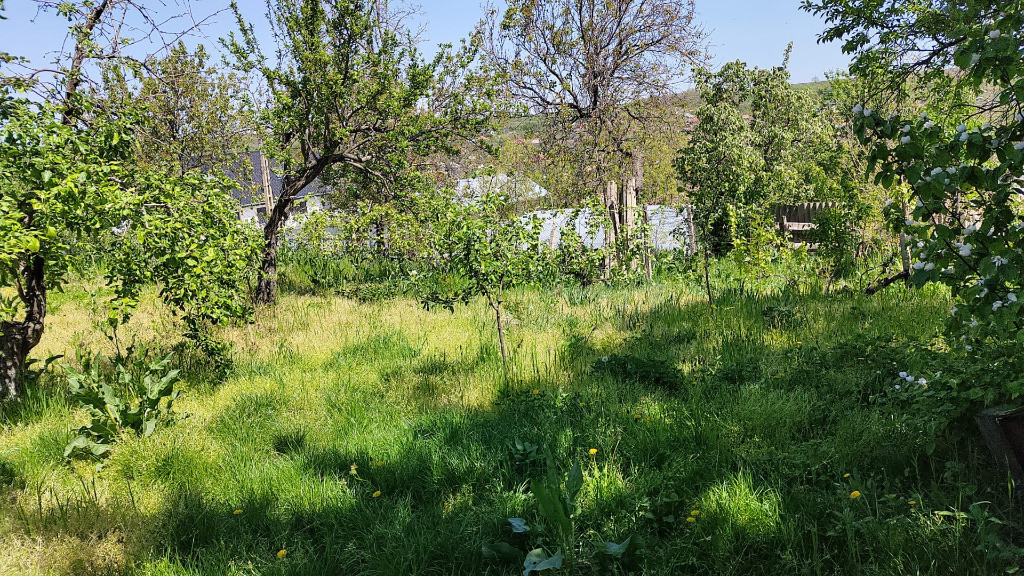 Casa cu 2 camere renovate in suprafata de 32 mp. baia bucataria si un dormitor in curs de renovare, livada cu meri ciresi piersici si alti pomi fructiferi, teren in suprafata de 800 mp