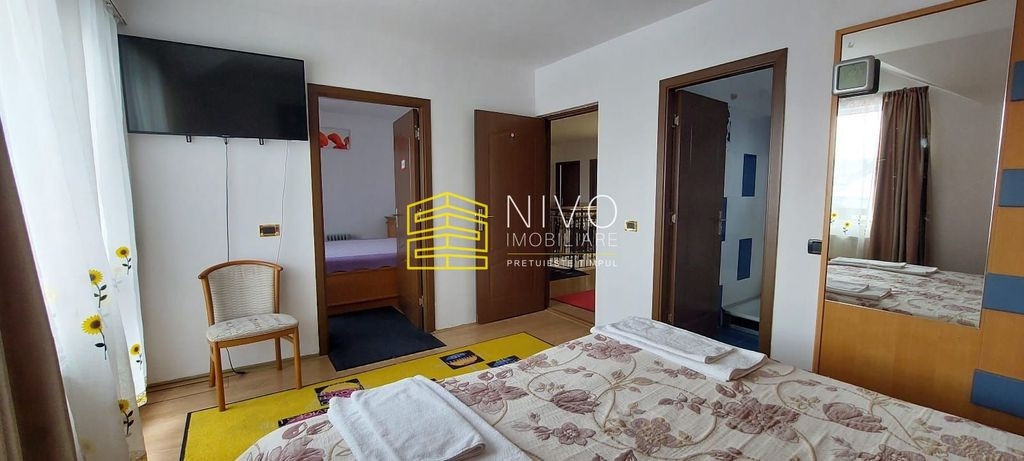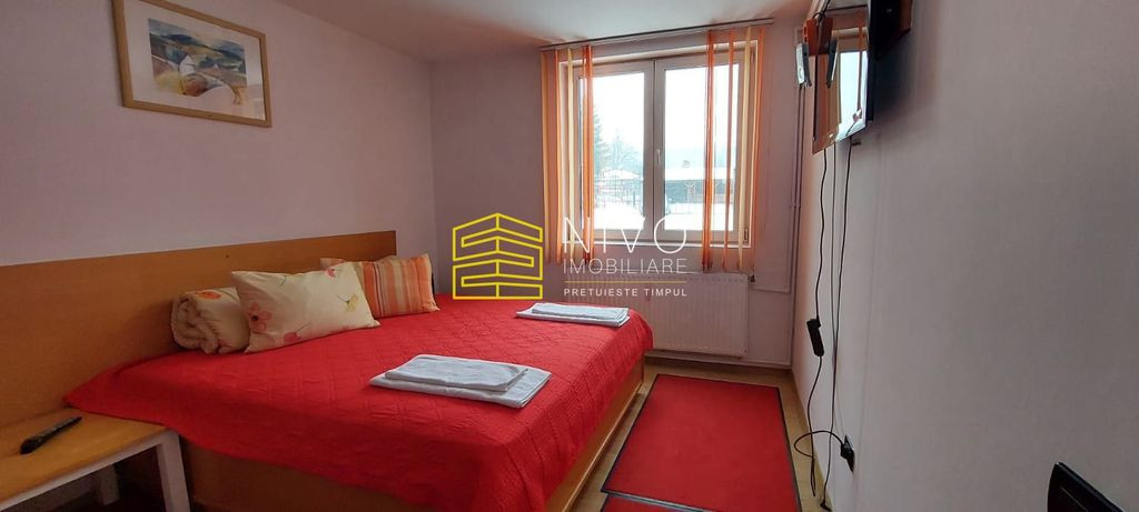 BC/136 Nivo Imobiliare vă propune spre închiriere această casă situată în localitatea Praid, județul Harghita. Casa este dispusă pe două niveluri (P+M), are o suprafață utilă de 300 mp și este compusă astfel: – Parter: living, spațiu de luat masă, bucătărie, terasă – Etaj: 5 dormitoare, 5 băi, balcon Este izolat termic, dotat cu centrală proprie pe lemn, geamuri termopan, uși interioare noi și parchet laminat. Terenul aferent are o suprafață totală de 700 mp, curtea este amenajată cu gazon și arbori ornamentali. Se închiriează mobilat și utilat la prețul de 1.100 Euro/lună + garanție echivalentul unei chirii. Comision: 50% din contravaloarea unei chirii