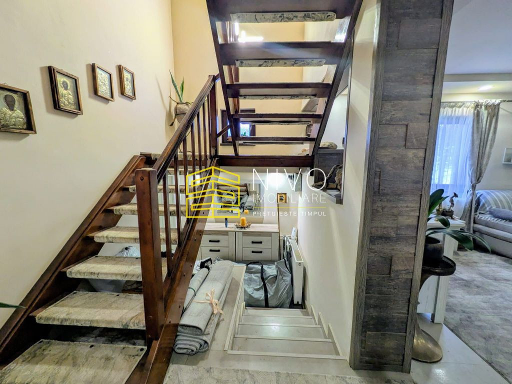Nivo Imobiliare vă propune spre vânzare în exclusivitate această casă situată în localitatea Maiad. Casa este dispusă pe două niveluri (P+M), are o suprafață utilă de 130 mp și este compusă astfel: – Parter: living, bucătărie, baie, 2 terase – Etaj: 2 dormitoare, baie, balcon Este dotat cu centrală proprie pe gaz și pe lemn, aer condiționat, geamuri termopan, uși interioare noi și parchet laminat. Dispune de o pivniță, unde se află camera tehnică. Terenul aferent are o suprafață totală de 750 mp, curtea este amenajată cu gazon, arbori ornamentali și pomi fructiferi. Se vinde mobilat și utilat la prețul de 139.000 Euro. 0% comision pentru cumpărător. Posibilitate de închiriere la prețul de 500 Euro/lună + garanție echivalentul unei chirii Comision: 50% din contravaloarea unei chirii