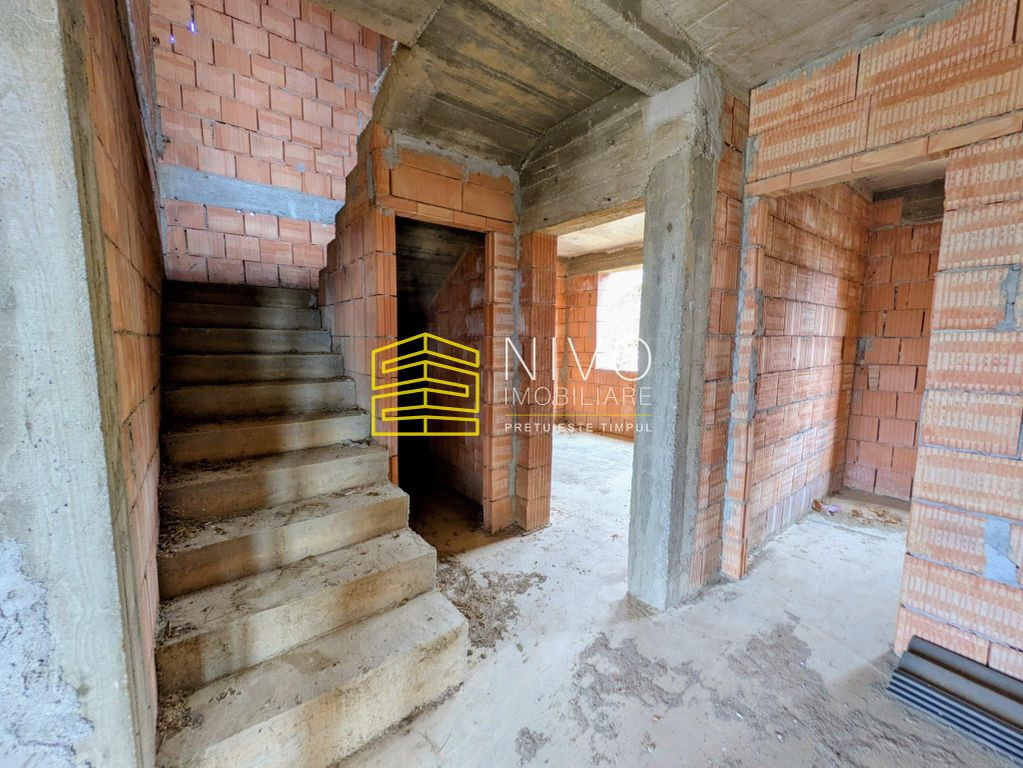 AV/179 Nivo Imobiliare vă propune spre vânzare această casă situată în județul Mureș, localitatea Ernei. Este o construcție solidă din cărămidă, edificată în 2023. Casa este dispusă pe două niveluri, are o suprafață utilă de 177 mp și este compusă din 4 dormitoare, 2 băi, living generos, birou, cămară, garaj, cameră tehnică și 2 terase. Terenul aferent are o suprafață totală de 821 mp, îngrădit, cu acces auto. Imobilul are documentația completă și în regulă, beneficiind de toate utilitățile necesare: apă, gaz și energie electrică. Poziționare excelentă, aflată în stadiul de structură (la roșu), pregătită pentru personalizarea finisajelor după preferințele viitorului proprietar. Prețul de vânzare este 108.500 Euro. Comision 0% pentru cumpărător.