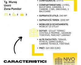 AV/171 Nivo Imobiliare vă propune spre vânzare o casă în Târgu Mureș, cartierul Unirii, zona Pomilor. Casa este dispusă pe 3 niveluri (D+P+E), având o suprafață de 240 mp și este compusă astfel: