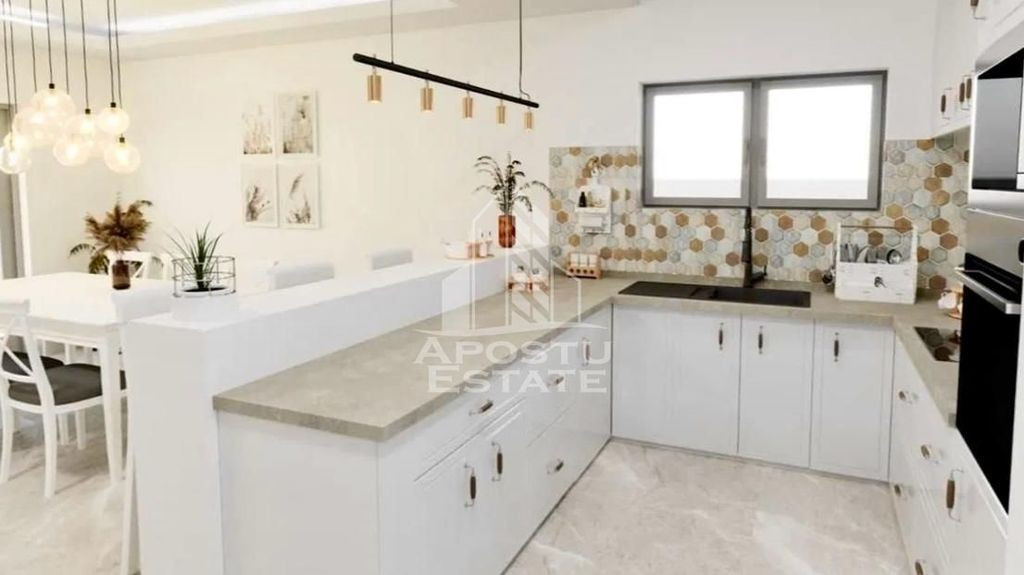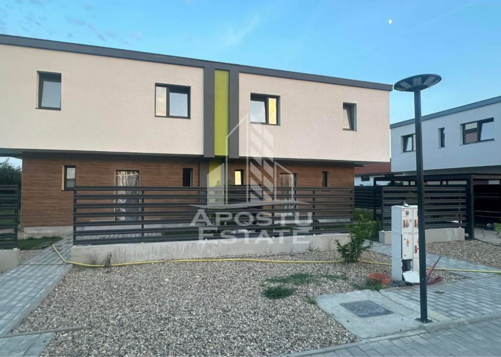 Apostu Estate va prezinta o casa moderna, eficienta energetic si complet finisata, situata in cartierul Gai, pe strada Noua din Arad. Construita pe structura de lemn KVH si dotata cu tehnologie smart home, locuinta dispune de panouri fotovoltaice, pompa de caldura si sistem de iluminat automatizat. Casa are o suprafata utila de 119.4 mp, la care se adauga o terasa de 15 mp, un carport pentru masina si un teren aferent de 300 mp. Se preda complet finisata, atat la interior, cat si la exterior, cu curtea amenajata. Detalii proprietate: Structura din lemn KVH, durabila si eficienta energetic Acoperis EPDM, rezistent la intemperii Incalzire in pardoseala pentru confort sporit in sezonul rece Pompa de caldura aer-apa pentru incalzire si racire eficienta Panouri fotovoltaice de 4 kW pentru reducerea costurilor de energie Usa culisanta cu sistem de inchidere perimetrala pentru siguranta si estetica Izolatie interioara din fibrolemn de 16 cm si exterioara din polistiren de 10 cm Compartimentare moderna, cu 4 camere, dintre care 3 dormitoare spatioase 3 bai – una de serviciu, una cu cada si una cu dus Terasa de 15 mp, perfecta pentru relaxare Carport acoperit pentru masina Teren cu o suprafata totala de 294 mp Sistem de iluminat Wi-Fi pentru control inteligent al luminilor Usi interioare din lemn, pentru un aspect elegant Constructie finalizata in 2024 Se preda complet finisata, cu posibilitatea de mobilare si utilare contra cost suplimentar Oferim asistenta completa pe tot parcursul procesului de achizitie: Vizionare Consiliere si negociere Procesare documente, rezervare notar Suport pentru obtinerea unui eventual credit imobiliar, prin departamentul nostru specializat Id oferta: CP2299058 Pentru mai multe detalii si vizionari, nu ezita sa ne contactezi!