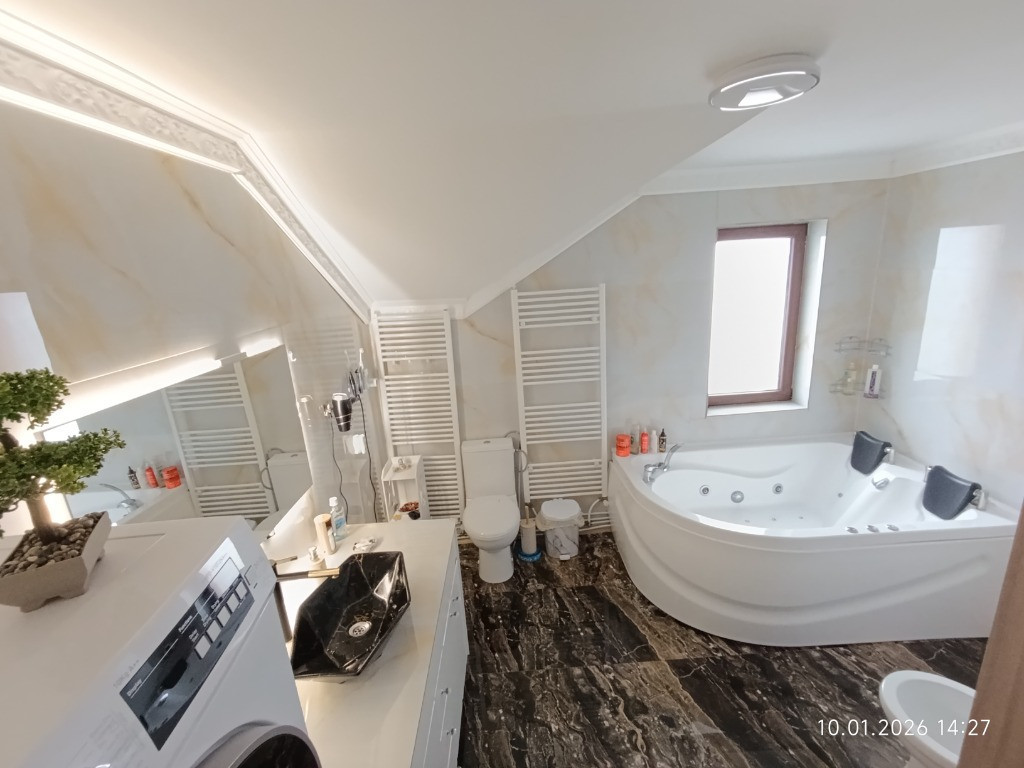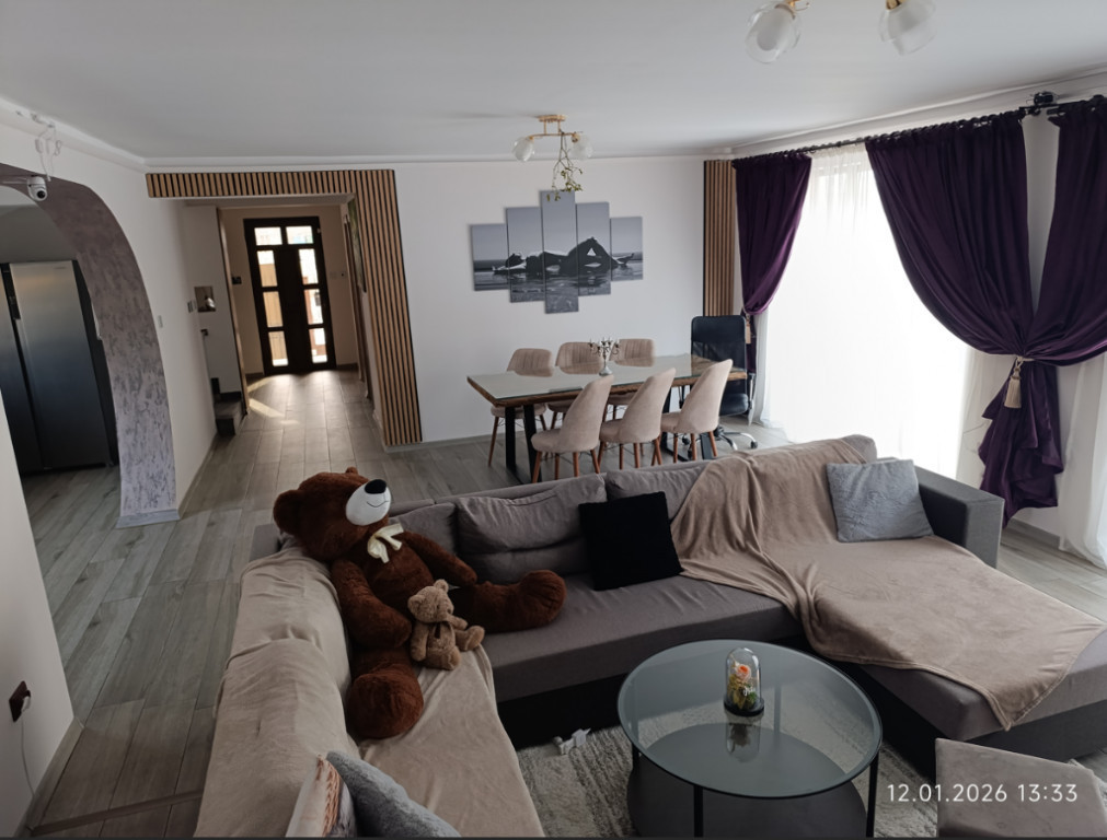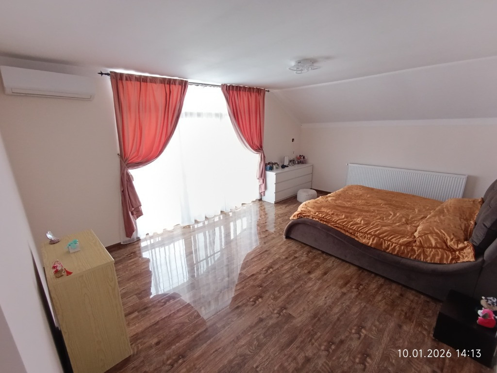 Persoană fizică – vânzare directă, FARA AGENTII !!! Vând casă individuală smart, construită în 2022, situată într-o zonă liniștită și aerisită din Sânpetru – Strada Morii, cu vedere panoramică spre munți și oraș. Locuința este complet mobilată și utilată, gata de mutare, oferind confort ridicat, siguranță și independență față de utilitățile publice, cu costuri foarte reduse de întreținere. Pentru o experiență completă, am realizat un tur virtual care permite vizionarea casei online, cameră cu cameră, exact ca la fața locului. Nu se pot pune linkuri, trebuie copiat si pus in bara de adresa a browserului asa cum apare in prima imagine nenciug.github.io/tur-virtual/ Caracteristici esențiale: - Suprafață la sol: 108 mp - Suprafață desfășurată: 202 mp - Suprafață utilă totală: 163 mp, din care: - 148 mp spații locuibile - balcon acoperit: 7,3 mp - casa scării: 4 mp - verandă: 3,33 mp - Teren: 500 mp - Terasă acoperită: 20 mp - Garaj acoperit pentru 2 autoturisme - Magazie: 15 mp - Regim de înălțime: P+M - An construcție: 2022 - Certificat energetic: Clasa B Se vinde complet mobilată și utilată Compartimentare: - Parter: verandă, vestibul, birou, hol, baie, living spațios, bucătărie complet utilată, spațiu tehnic, casa scării - Mansardă: 2 dormitoare (dormitorul matrimonial cu balcon pe toată lungimea casei), dressing, baie, hol, sală de fitness complet echipată Utilități, confort & eficiență: - Curent trifazic 380 V, racordat - Contract de prosumator activ - Panouri fotovoltaice 6,6 kW – producție peste consum - Centrală pe peleți Ferroli - Puffer cu 2 serpentine + rezistență electrică - Panou solar pentru apă caldă – 150 l - Încălzire în pardoseală la parter - Radiatoare la mansardă - Aer condiționat smart în living și dormitoare - Apă pentru consum (inclusiv potabilă) din foraj propriu - Canalizare prin fosă septică Casa funcționează independent de rețelele publice, oferind stabilitate, control total asupra consumului și cheltuieli minime lunare. Smart Home & securitate: - 6 camere video exterioare cu vedere nocturna - Bariere infraroșu perimetrale - Senzori uși/ferestre - Sistem de alarmă interior - Senzori de fum și inundație - Prize, întrerupătoare, climatizare și centrală controlabile din telefon - Poartă auto automată smart Curte & acces: - Curte amenajată complet - Terasă spate acoperită - Gazon cu irigații automate - Robot smart pentru tunderea gazonului - Posibilitate de amenajare piscină - Drum de acces neasfaltat, întreținut, cu asfalt frezat Din păcate, site ul nu permite încărcarea unui număr mai mare de fotografii. Pentru mai multe imagini, detalii suplimentare sau vizionare, mă puteți contacta la numărul de telefon din anunț sau prin mesaj: 0775602083