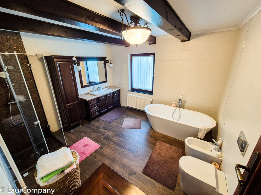 Va prezentam spre vanzare o proprietate spectaculoasa, situata intr o zona exclusivista Platou Gavana Pitesti reprezentare remarcabilă a designului modern , plasată pe un teren generos in suprafata de 1001 mp cu o deschidere de 25 m , vecinatate padure , această locuință impresionează din toate unghiurile. Este o vila personalizata S+ P+1E+pod functional , construita in anul 2017 . caramida , acoperis Tigla , izolatie termica exterior , curte frumos amenajata , gard de beton , Proprietatea prezentata este un produs imobiliar destinat unui cumparator exigent si care intruneste urmatoarele caracteristici: compartimentare functionala, materiale de constructie superioare si finisaje de calitate premium .. Vila are o suprafata totala de 327 mp cu o suprafata utila de 267 mp si dispune de urmatoarea compartimentare: Parter: living , bucatarie , baie , camera tehnica , camera depozitare , terasa , garaj. Etaj : 3 dormitoare , 2 bai [ un dormitor matrimonial cu baie], dressing , 2 balcoane. Pod mansardabil cu acces din dressing si din terasa etaj . Proprietatea beneficiaza de toate utilitatile orasului, precum si de centrala proprie instalatie cupru , aer conditionat pentru fiecare camera , alarma si sistem monitorizare video , amenajare peisagistica in curte, sistem irigare , sistem colectare si bazin pt apa pluviala , tamplarie pvc tripan Veka , rulouri al actionate electric , parchet masiv stejar , usi interior lemn masiv fag , Această vila este expresia luxului și rafinamentului, oferind un stil de viață confortabil și elegant, perfect pentru cei care apreciază calitatea și originalitatea în designul locuințelor. Vila se preda mobilata si utilata. Iar pentru ca intreg conceptul nu poate fi descris in doar cateva cuvinte, ne dorim sa ne intalnim pentru a va face o prezentare mai ampla, si va garantam ca aceasta proprietate merita toata atentia dvs!! Pret 575 000 euro Laur Company Imobiliare LC 3185