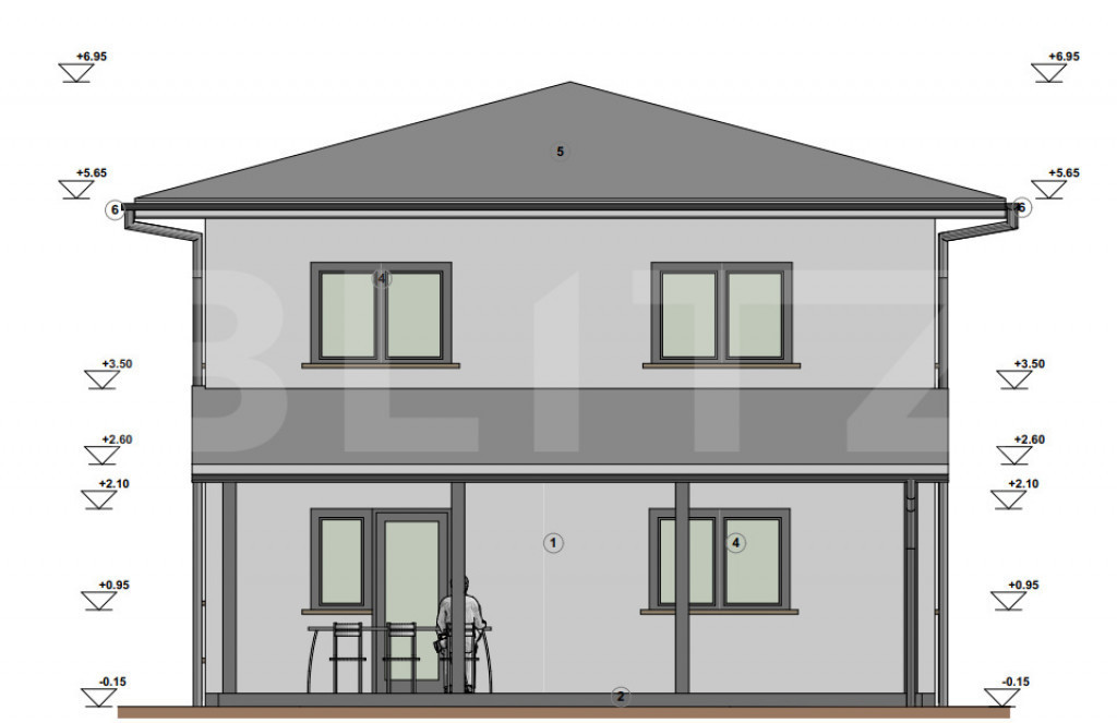 Casa are o suprafață utilă de 130 mp, realizată din materiale premium, cu o compartimentare gândită pentru confort și funcționalitate.