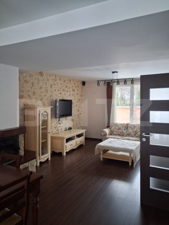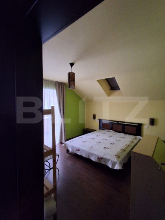 BLITZ vă propune spre închiriere o casă spațioasă și elegantă, cu o suprafață utilă de 250 mp, situată într-o zonă liniștită, cu vederi deschise spre pădure. Proprietatea este complet mobilată și ideală pentru o familie sau pentru persoane care își doresc confort, intimitate și acces la natură. Casa beneficiază de o curte privată de 250 mp, amenajată, perfectă pentru relaxare, la care se adaugă o căsuță de grădină și 2 locuri de parcare, dintre care unul în garajul de 18mp. Compartimentarea este funcțională și bine gândită, fiind structurată pe parter, etaj și mansardă: ???? Parter: hol de intrare primitor debara pentru depozitare baie de serviciu cu toaletă și chiuvetă living generos, cu ferestre mari, șemineu și ieșire directă către grădină bucătărie open-space, luminoasă, cu geam mare spre curte ???? Etajul 1: 3 dormitoare spațioase, două dintre ele cu balcon baie complet utilată, cu duș walk-in, toaletă, bideu și două chiuvete ???? Etajul 2: mansardă open-space pe toată suprafața casei, amenajată ca birou și zonă de depozitare baie cu duș și mașină de spălat rufe Proprietatea se remarcă prin spații generoase, lumină naturală din abundență și o poziționare excelentă, oferind un echilibru ideal între confort urban și liniștea naturii. ???? Pentru mai multe informații sau pentru programarea unei vizionări, vă așteptăm să ne contactați! Cod ofertă / ID BLITZ: P161521 Id intern: P161521