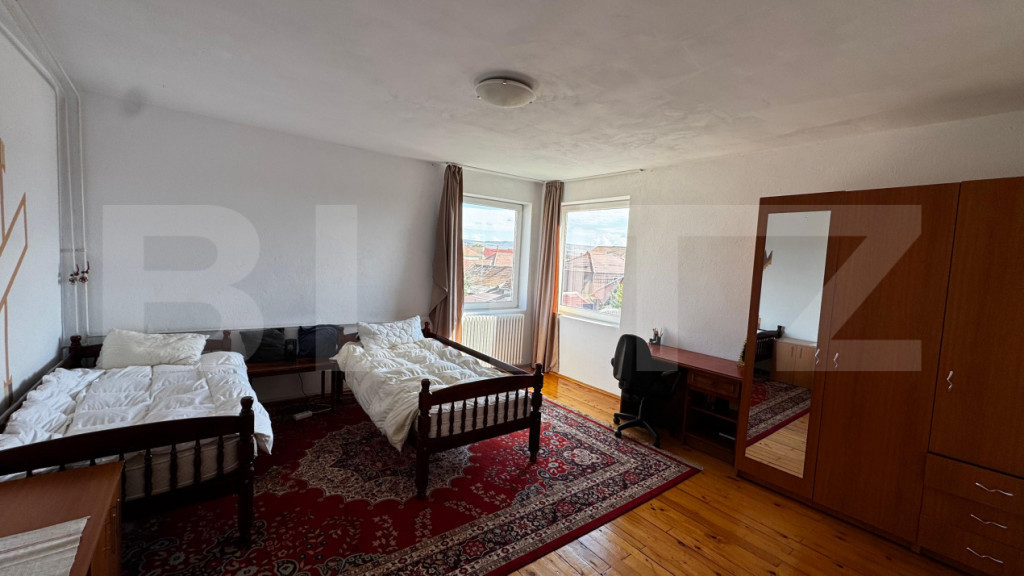 Casă spațioasă de închiriat în zonă ultracentrală – ideală pentru locuință, birouri sau activitate comercială Blitz vă propune spre închiriere o proprietate deosebită, versatilă și generoasă ca spațiu, situată într-o zonă liniștită, dar ultracentrală, la doar 300 m de centrul vechi al orașului. Datorită compartimentării eficiente și accesului facil, proprietatea este potrivită atât pentru locuință, cât și pentru sediu de firmă, birouri, clinică, cabinet sau alte activități comerciale. Casa este dispusă pe demisol, parter, etaj și mansardă și oferă spații generoase, bine compartimentate. Compartimentare 8 camere spațioase (15–30 mp) 3 băi mari (aprox. 12 mp fiecare), câte una pe nivel 2 bucătării complet echipate living, sufragerie și hol central de 20 mp cu scară interioară 2 balcoane (unul închis) terasă de 35 mp, parțial acoperită, cu acces direct în grădină Spații exterioare și anexe curte privată cu zonă verde generoasă 2 pivnițe și cameră tehnică dependințe ce pot fi transformate în birouri, depozite sau camere suplimentare 2 garaje închise și încălzite (3–4 mașini) 1 loc de parcare în curte Utilități și facilități apă, canalizare, energie electrică, gaz internet, cablu TV și telefon sistem pentru apă caldă menajeră cu eficiență energetică contorizare separată pentru spațiul comercial Spațiu comercial inclus Proprietatea include spațiu comercial de 55 mp, cu acces direct din stradă și din curte, utilități proprii și contorizare separată – ideal pentru magazin, birou, cabinet, atelier sau showroom. Avantaje ✔ locație ultracentrală ✔ spațiu mare și compartimentare flexibilă ✔ potrivită pentru locuință sau business ✔ spațiu comercial separat ✔ curte privată și locuri de parcare Proprietatea este ideală pentru companii, clinici, firme sau pentru cei care își doresc o locuință spațioasă într-o zonă centrală premium. Cod ofertă / ID BLITZ: P166465 Id intern: P166465