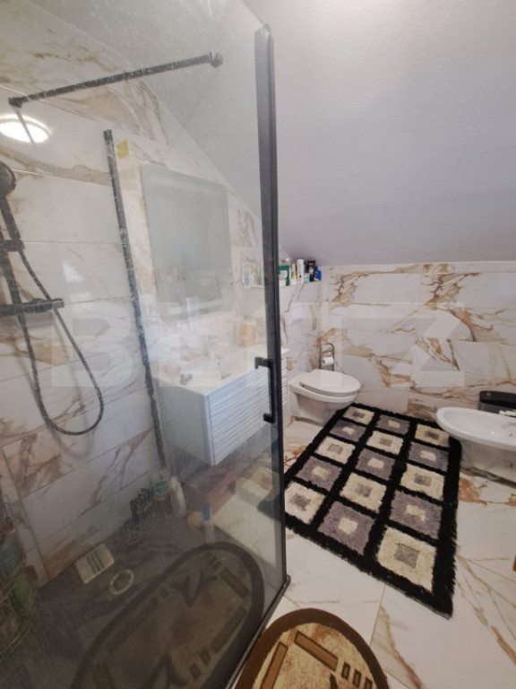 Casă de vânzare în Vulcan, Județul Brașov – priveliște deosebită spre munți! ???? Localizare: Comuna Vulcan, la doar 10 minute de Brașov și 2 km de autostrada Brașov–Ploiești ???? Suprafață utilă: 170 mp ???? Teren: 654 mp ✨ Descriere generală Vă propunem spre vânzare o casă modernă, cu regim de înălțime P+M, amplasată într-o zonă pitorească din comuna Vulcan, cu priveliște superbă asupra munților și acces rapid către principalele puncte de interes din zonă: Stațiunea turistică Bran, Cheile Grădiștei, noul Aeroport Ghimbav și Autostrada Transilvania. Locația îmbină perfect liniștea rurală cu accesibilitatea urbană, fiind ideală atât pentru locuință permanentă, cât și pentru casă de vacanță. ???? Compartimentare: Parter: Bucătărie Living generos cu acces la terasă Baie Hol Casa scării Mansardă: 3 dormitoare spațioase Dressing 2 băi Hol Pod: spațiu de depozitare Subsol: cameră tehnică dotată cu centrală pe peleți Încălzirea se realizează prin pardoseală atât la parter, cât și la mansardă, asigurând un confort termic excelent. ???? Detalii tehnice: Structură mixtă: cărămidă Porotherm Robust 30 cm, cu sâmburi, stâlpi și placă din beton Izolație termică: polistiren ignifug Caparol Dalmatina EPS 80 – 10 cm Soclu: polistiren extrudat 5 cm, hidroizolat și placat cu piatră Tâmplărie QFort PVC cu geam tripan (3 foi de sticlă) Ușă de acces din PVC stratificat Uși interioare din lemn Parchet laminat 8 mm, gresie și faianță moderne Glafuri interioare și exterioare din marmură Pod izolat cu vată bazaltică de 10 cm Acoperiș cu țiglă de beton Bramac ???? Curte și utilități: Curtea este complet amenajată, cu pavaj, acces auto și pietonal, oferind tot confortul unei locuințe moderne. Utilități disponibile: Apă Curent electric Canalizare Fibră optică (internet) ➡️ Racordarea la gaz este în curs de realizare. ???? Avantaje: ✅ Priveliște panoramică spre munți ✅ Zonă liniștită, aer curat ✅ Construcție solidă, materiale de calitate ✅ Acces rapid la Brașov, Bran și Ghimbav Cod ofertă / ID BLITZ: P156633 Id intern: P156633