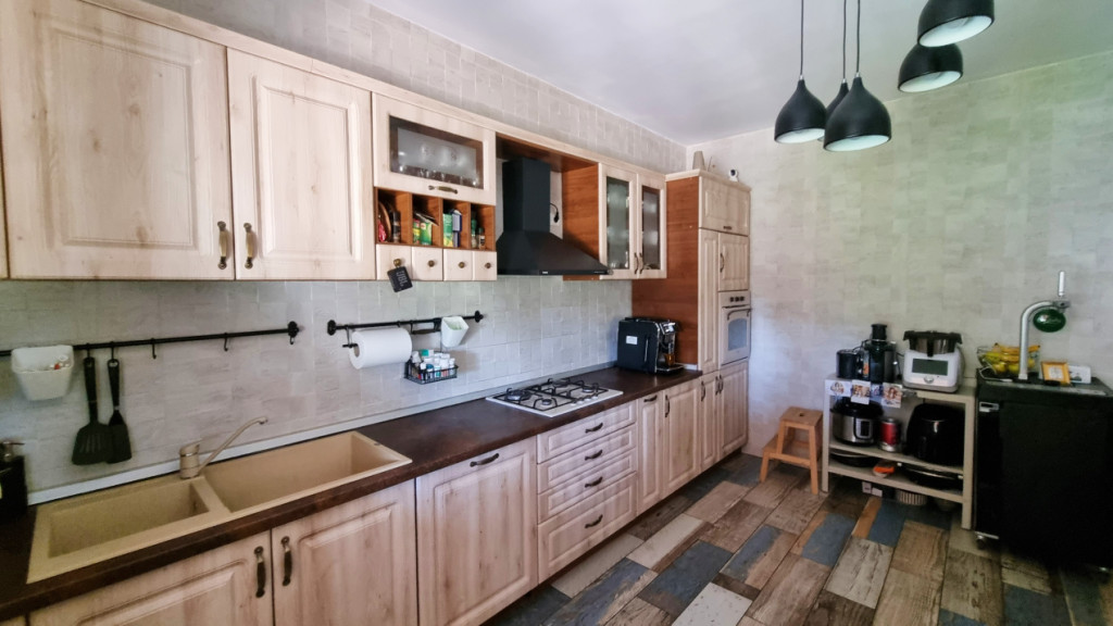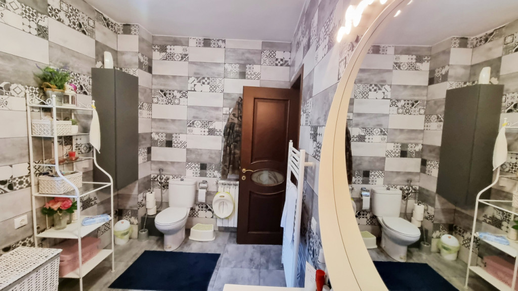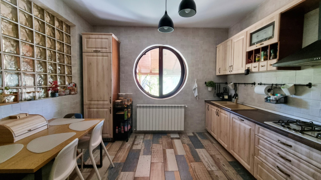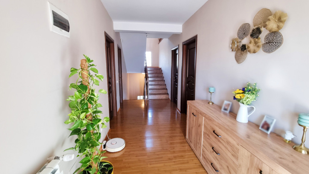 Agentia noastra va propune spre vanzare o casa spatioasa, situata stradal la intrarea in Ciorogarla, cu regim de inaltime P+1E+M, cu o cuprafata totala de 343 metri si amprenta la sol de 128 mp, si suprafete dupa cum urmeaza: - parter: camera, bucătărie, grup sanitar cu dus, hol cu o suprafață utila de 98 mp + spațiu tehnic si casa scării, rezultând o suprafață totală de 109 mp; - etaj: inaltime 3 camere, baie generoasa cu cada, hol cu o suprafata utila de 101 mp+ casa scării si balcon, rezultând o suprafață totală de 114 mp; - mansarda: open space + camera + baie, cu o suprafață utila de 107 mp+ casa scării si balcon, rezultând o suprafață totală de 120 mp. Casa este construita pe un teren de 487 mp, cu o deschidere directa la drumul principal de 15.21 mp, asigurând un acces facil către București, stația STB aflându-se la 3 min de proprietate. Accesul se face atat stradal din drumul principal, cat si pe un drum privat inchis cu bariera controlata prin telecomanda/telefon Casa se vinde complet utilata + mobilata Mobexpert (inclusiv electrocansice). Curtea este amenajata cu gazon, pomi si plante ornamentale, sistem de irigatii atomat, alee pavata si o terasa inchisa cu geamuri de sticla glisanta. In curte exista o casuta de lemn pentru copiii+ tobogat si o trambulina imensa, iar in spatele casei este o magazie de aprox 12 mp. Proprietatea beneficiază de supraveghere video si alarma, AC Romstal de 32000 BTU si centrala termica Vaillant + boiler Romstal; Casa este racordata la toate utilitățile: - apa (de asemenea exista ai put pentru irigare); - curent trifazic; - gaze; - canalizare; - cablu TV + internet; Proprietatea este împrejmuita de jur-imprejur de un gard din BCA, inalt de 2.25m, cu centura la baza lui cat si in partea superioara, cu lumini ambientale pe laturile interioare. Pentru vizionari, asteptam sa ne contactati! Id intern: P4040