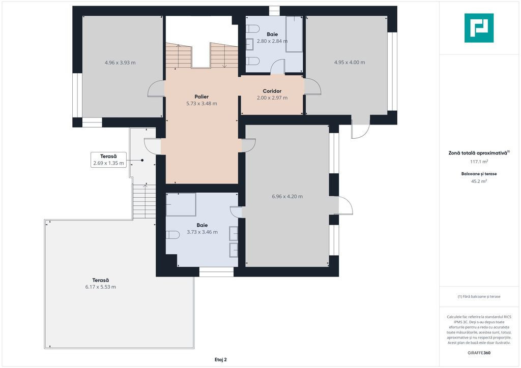 •	Terase mari cu multiple posibilități de utilizare (relaxare, spațiu de joacă, grătar etc.);