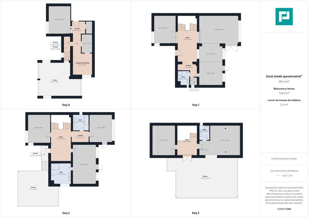 Casa este construită pe un regim de înălțime D+P+E+M (demisol + parter + etaj + mansardă) și dispune de o suprafață utilă de aproximativ 400 mp, amplasată pe un teren generos de 850 mp. Imobilul este ideal pentru o familie numeroasă sau poate fi adaptat ușor pentru funcțiuni mixte: locuință și birou/sediu firmă.