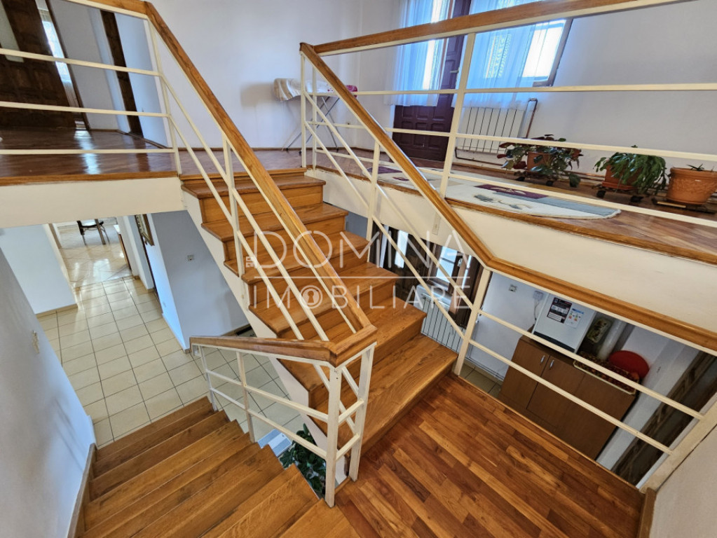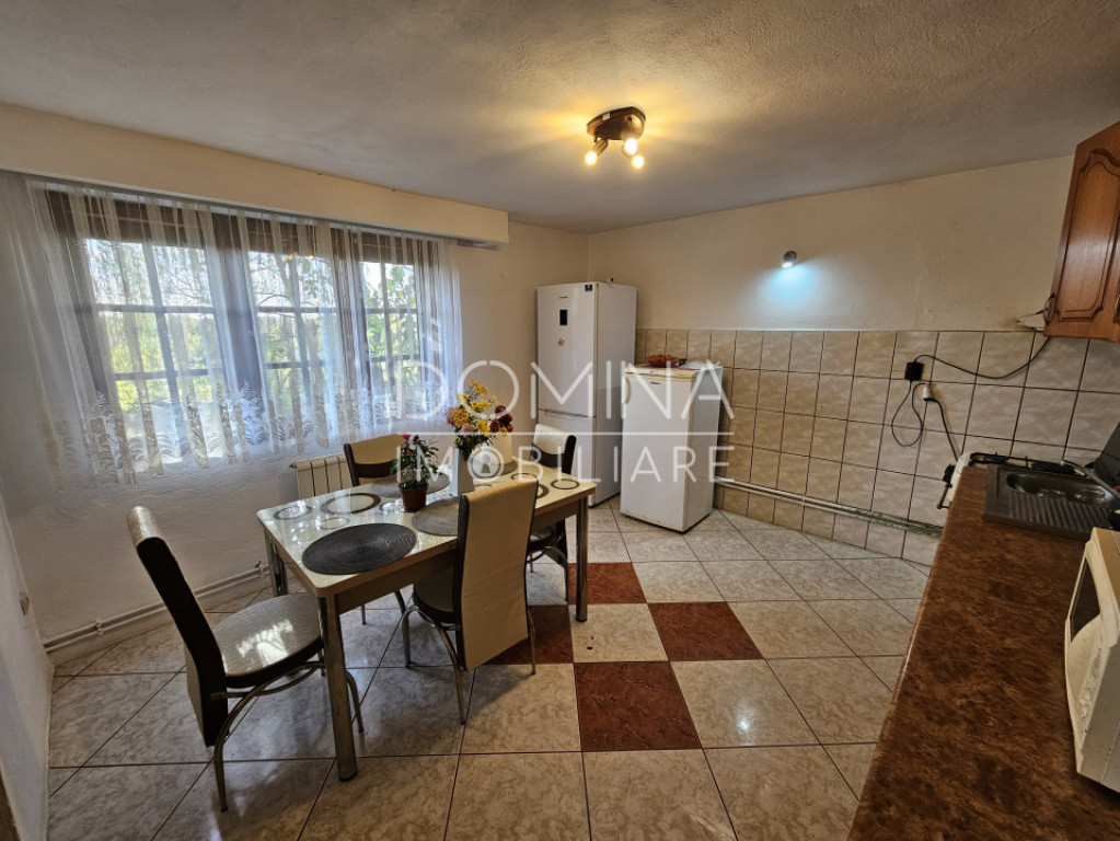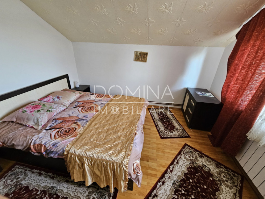 Casă spațioasă de închiriat - mobilată/utilată - cartier Dumbrava Domina Imobiliare vă propune spre închiriere o casă, situată într-o zonă liniștită din Târgu Jiu, pe strada Crîngului, în cartierul Dumbrava – o locație ideală pentru cei care își doresc un cămin primitor, ferit de agitația urbană, dar totuși aproape de principalele puncte de interes din oraș. Detalii generale: Casa are un regim de înălțime P+M (parter + mansardă), o suprafață utilă de 205 mp, fiind amplasată pe un teren generos de 5.270 mp, perfect pentru activități în aer liber, grădinărit sau pentru petrecerea timpului liber alături de familie. Proprietatea impresionează prin spațiu, luminozitate și funcționalitate, oferind o atmosferă caldă și primitoare. Compartimentare: Parterul este compus din: - un living spațios, bucătărie complet utilată și mobilată cu spații generoase de depozitare, dormitor confortabil, baie, hol generos, care asigură o circulație fluidă între camere și terasă. Mansarda este compartimentată astfel: - 3 dormitoare luminoase, baie, hol spațios care poate fi amenajat ca zonă de relaxare sau birou, 2 terase cu priveliște frumoasă asupra grădinii și împrejurimilor. Dotări și finisaje: centrală termică proprie, tâmplărie PVC cu geam termopan, pardoseli finisate cu gresie, faianță și parchet din lemn, uși interioare din lemn masiv, mobilier modern și echipamente electrocasnice: mașină de spălat, frigider, aragaz, TV; conexiune la cablu TV și internet. Imobilul este racordat la toate utilitățile: apă curentă, curent electric, canalizare, gaz, cablu TV și internet. Curte și grădină: Proprietatea dispune de o curte foarte mare, frumos amenajată, cu vegetație matură, pomi fructiferi și spații verzi. Este locul ideal pentru petrecerea timpului liber, organizarea unor mese în aer liber sau amenajarea unui spațiu de joacă pentru copii. Există și o zonă acoperită – perfectă pentru parcare sau relaxare în zilele călduroase. Alte avantaje: Această casă este alegerea ideală pentru persoanele care caută confort, intimitate și liniște, dar și un spațiu generos, unde natura și modernul se îmbină armonios. Proprietatea se închiriază complet mobilată și utilată, fiind pregătită să devină acasă pentru noii chiriași, fără a necesita investiții suplimentare. ID/COD ofertă: P1183 Vrei să vezi mai multe oferte similare? Ne poți contacta la numărul de telefon 0737 800 000 sau pe domina.ro. Id intern: P1183