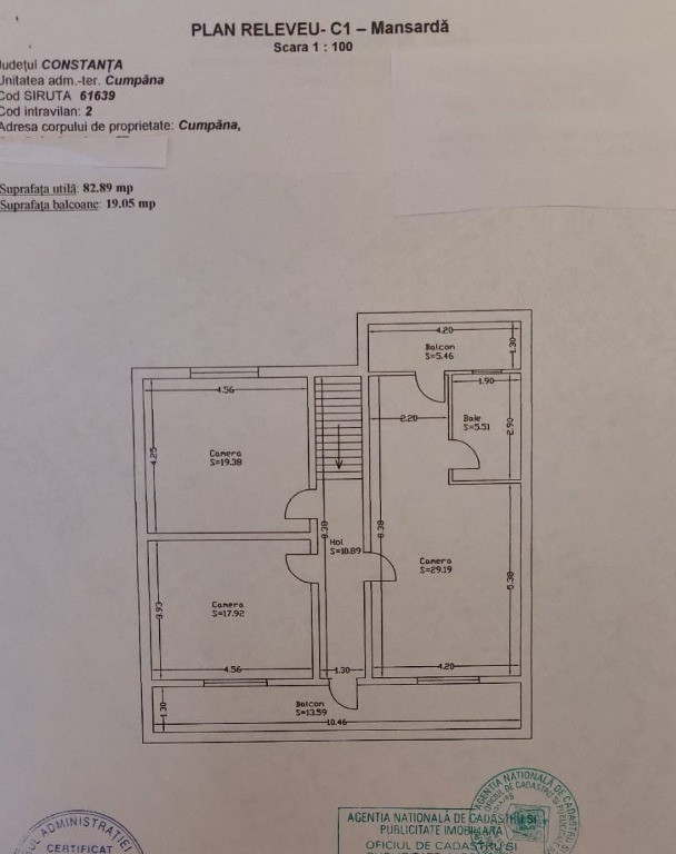 Casă spațioasă P+1E pe teren de 1000 mp în Cumpăna – aproape de Constanța, locuință modernă și liniște deplină Preț: 370.000 € (ușor negociabil) Locație: Comuna Cumpăna, județul Constanța (zonă asfaltată, la 15 min de gara CFR Constanta) Detalii generale: • Suprafață teren: 1000 mp • Deschidere la stradă: 19 ml • Suprafață construită la sol: 100 mp • Regim înălțime: Parter + Etaj • Suprafață utilă totală estimată: ~160 mp • An construcție: 2005–2006 • Stadiu: locuibilă, parțial finalizată Descriere proprietate: Proprietatea este amplasată într-o zonă liniștită din Cumpăna, pe o stradă asfaltată, la doar câteva minute de principalele puncte de interes: 2 min de Primărie, școală, centru; 3 min de Penny; 11 min de Auchan; 15 min de Gara Constanța; 20 min până la Eforie Nord sau Techirghiol. Casa este construită solid zid de 48cm (parter din cărămidă, etaj din BCA), izolată termic cu izolație Isomineral Celco 13 cm (2022), tâmplărie Salamander PVC 5 camere, acoperiș Lindab Nordic 400, pod izolat cu spumă poliuretanică (cu acces prin scară pliabilă și OSB pentru depozitare). Compartimentare: Parter: • Living spațios de 39 mp cu două geamuri mari (marmură alb-gri pe glafuri) • Bucătărie complet mobilată și utilată (16 mp) – mobilier MDF, aragaz cu plită pe gaz si cuptor electric, hotă, mașină de spălat vase, frigider, masă și 4 scaune • Baie modernă (8 mp) cu gresie, faianță, caramidă aparentă, iluminat LED RGB smart • Cameră tehnică cu centrală Viessmann Vitopend 100W (2017), 3 filtre de apă, stabilizator tensiune, spațiu depozitare • Holuri, spațiu de depozitare, gresie, întrerupătoare touch Livolo Etaj: • 3 dormitoare (18 mp, 19.5 mp și 29 mp) • 2 balcoane (13.6 mp și 5.5 mp) • Dormitorul matrimonial include baie proprie (5 mp) – de finalizat • Parchet, uși albe noi, glafuri marmură, corpuri de iluminat Smart • Intrerupatoare touch Livolo • Aer condiționat LDK Aeolus Pro 28.000 BTU (2024) Curte și exterior: Teren generos de 1000 mp cu aleie pavata și locuri de parcare (4 locuri in afara proprietatii – 1 parcare betonata in interior inclusiv carport din lemn Dedeman 2025). Cabanuta de 4000/2000 pentru ustensile lucru in curte si rafturi. Foișor metalic, balansoar-pat, grădină amenajată cu pomi fructiferi (cais, păr, vișin, smochin, vie) și flori perene. Fântână proprie. Loc liniștit, fără trafic intens – casa este amplasată în spatele proprietății principale, oferind intimitate și siguranță. Utilități și documente: • Apă, gaze, curent, internet • Canalizare la poartă (pregătită pentru racordare) • Extras CF actual, planuri cadastrale, certificat fiscal fără datorii • Proprietar persoană fizică, acte complete, vânzare directa. Descriere finală: Casă ideală pentru o familie care caută liniște, spațiu și confort aproape de oraș, dar și o investiție excelentă într-o zonă în continuă dezvoltare. Proprietatea este locuibilă imediat, oferind posibilitatea de a fi finalizată după preferințele cumpărătorului. Pentru detalii sau vizionare: Telefon: 0730 603 286, 0787 738 485