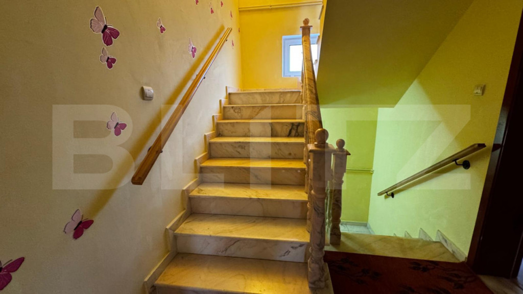 Blitz vă propune spre vânzare o proprietate cu adevărat versatilă, situată în Alba Iulia – Cartier Cetate, ideală atât pentru locuință premium, cât și pentru sediu de firmă sau investiție. ???? Proprietate cu potențial ridicat – locuire sau business Construită în 2008 pe structură solidă din cărămidă, casa impresionează prin suprafața generoasă, compartimentarea eficientă și posibilitatea de utilizare mixtă (rezidențial + office). ???? Specificații tehnice Regim de înălțime: S + P + 1 + M Suprafață construită: 484 mp Suprafață utilă: 360 mp Amprentă: 123 mp Teren: 300 mp Configurație: 4 băi 2 bucătării 3 balcoane ???? Compartimentare inteligentă Subsol (ideal pentru spații auxiliare sau independente): garaj bucătărie cu acces în curte dormitor baie spațiu depozitare Parter (zonă de zi / recepție): living generos 2 dormitoare / birouri baie terasă Etaj (zonă locuire / office): 3 camere bucătărie dining baie Mansardă (spațiu privat sau executive): living dormitor dressing spațios baie ⭐ De ce merită această proprietate? Versatilitate excelentă – poate funcționa ca locuință, sediu firmă sau ambele Suprafață mare utilă (360 mp) – rar disponibilă în zonă Compartimentare pe niveluri – ideală pentru separarea activităților Construcție solidă – cărămidă, durabilitate în timp Poziționare strategică în Cartier Cetate din Alba Iulia ???? Locație – un avantaj major Imobilul este amplasat într-o zonă centrală și bine cotată, cu acces rapid către: instituții publice școli și grădinițe zone comerciale puncte de interes ale orașului ???? Ideal pentru: sediu firmă / clinică / birouri locuință pentru familie numeroasă investiție cu randament (închiriere pe niveluri) O proprietate rară pe piață, care combină suprafața generoasă, poziția centrală și flexibilitatea utilizării, oferind atât confort rezidențial, cât și oportunități reale de business. Cod ofertă / ID BLITZ: P169896 Id intern: P169896