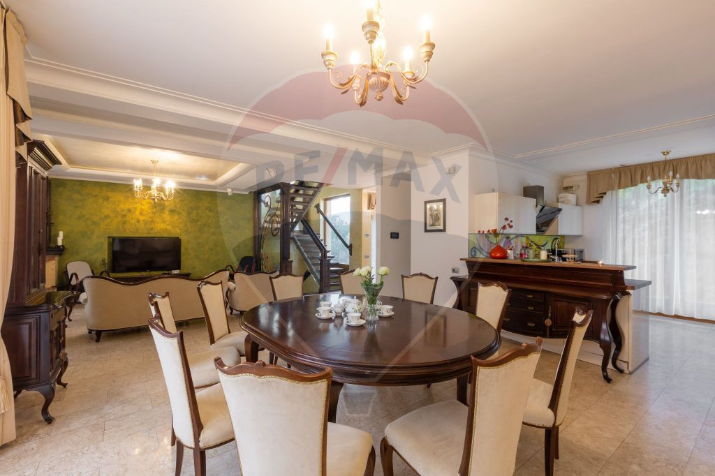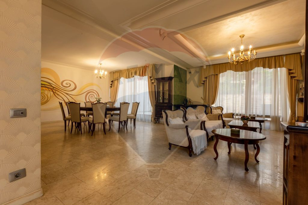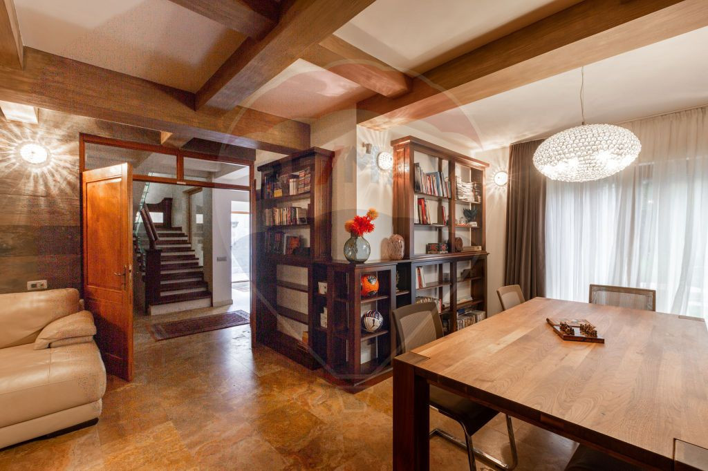 Casă spectaculoasă în Mediaș – reședința antrenorului Cristi Pustai În exclusivitate prin RE/MAX Bitte, vă propunem spre vânzare o proprietate unică, situată pe strada Greweln, una dintre cele mai frumoase și verzi zone din Mediaș, la marginea pădurii. Această reședință deosebită a aparținut antrenorului de fotbal Cristi Pustai, un nume cunoscut și respectat în sportul românesc, iar fiecare detaliu al casei reflectă eleganță, rafinament și personalitate Construcție solidă, design interior cu mobilier din lemn masiv și finisaje premium Zonă deosebit de liniștită, aer curat și priveliște către pădure Compartimentare și facilități: Garaj spațios Cameră de oaspeți luminoasă, cu baie proprie, ideală pentru vizite sau pentru a fi folosită ca spațiu independent. Hobby & relaxare - un etaj dedicat recreerii, compus dintr-o incapere generoasa dotata cu un bar din lemn masiv, bibliotecă generoasă, zona de relaxare sau petreceri, cu acces direct la terasa cu iarbă, pardoseli din piatră naturală. Zona de zi, alcatuita din livingroom spectaculos, mobilat clasic și elegant, cu șemineu și spațiu generos pentru relaxare. Dining impunător, cu masă mare pentru reuniuni de familie sau întâlniri oficiale. Bucătărie modernă, mobilată și utilată cu electrocasnice premium importate din Germania, cu design artistic. Pardoseli din marmură și piatră naturală 3 dormitoare spațioase, fiecare cu personalitate proprie, matrimonial elegant, dormitor romantic cu vedere la pădure și dormitor vesel pentru copii. 2 băi elegante, cu finisaje de lux, cadă freestanding și detalii clasice Terasă amenajată, cu zonă de grătar și spații ideale pentru petrecerea timpului cu prietenii Curte în trepte, cu vegetație și multă intimitate, priveliște directă către pădure și aer curat. Proprietate cu poveste și personalitate – casa antrenorului Cristi Pustai Design interior cu mobilier din lemn masiv realizat la comandă Locație premium – strada Greweln, una dintre cele mai curate și liniștite zone din Mediaș Spații generoase, compartimentare inteligentă, finisaje naturale (marmură, piatră, lemn masiv) Aceasta nu este doar o casă, ci o reședință cu caracter, perfectă pentru o familie care își dorește eleganță, confort și o locație de excepție.
