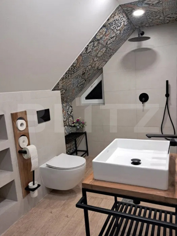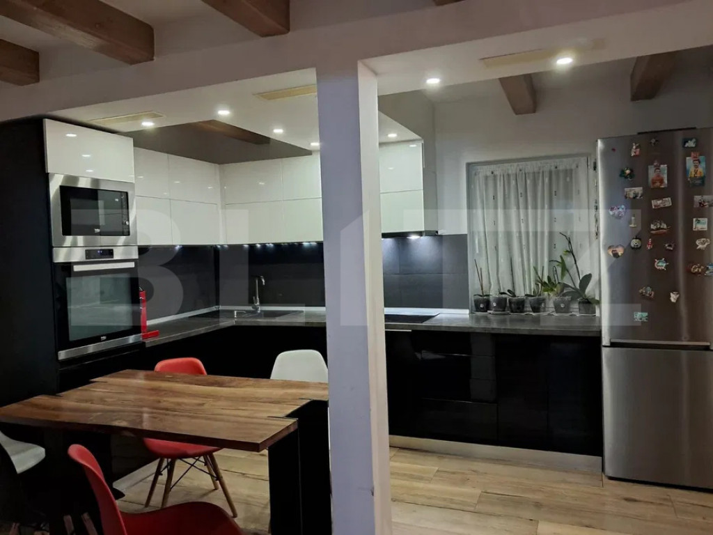 ✨ Proprietate superba de vânzare – 120 mp, teren 1.104 mp, complet mobilată, la 8 km de Târgu Mureș Vă prezentăm o proprietate deosebită, destinată celor care apreciază liniștea, spațiul și confortul modern, situată într-o zonă selectă, aproape de natură, dar la doar câteva minute de Târgu Mureș. Casa are o suprafață de 120 mp și este amplasată pe un teren generos de 1.104 mp, amenajat cu grijă pentru relaxare, funcționalitate și intimitate. Proprietatea se vinde complet mobilată și utilată, fiind gata pentru mutare imediată. ⸻ ???? Arhitectură și compartimentare Parterul oferă un spațiu aerisit și luminos: • hol de acces elegant • living generos cu bucătărie open-space • cămară • baie spațioasă de 6,45 mp cu cadă Etajul (mansardă) este dedicat zonei de noapte: • două dormitoare matrimoniale, fiecare cu dressing propriu • posibilitate de recompartimentare pentru obținerea a 3 dormitoare • baie modernă de 6,45 mp cu duș walk-in ✔ Cameră tehnică / spălătorie cu acces separat din terasa principală. ⸻ ???? Lifestyle & exterior Zona exterioară transformă proprietatea într-un adevărat refugiu privat: • terasă premium de 40 mp, complet amenajată • bucătărie de vară cu grătar, sobă și plită pe gaz • zonă de dining și lounge • piscină demontabilă 7 m x 1,2 m, cu sistem de filtrare • șezlonguri pentru relaxare • poartă de acces automată • parcare pavată Curtea include aproximativ 150 mp de suprafață plană pavată, ideală pentru activități recreative, loc de joacă sau extindere. Separat, printr-un gard discret, se află livada și zona verde ce continuă până la o platformă situată la marginea pădurii, oferind un cadru natural rar întâlnit. ⸻ ⭐ Beneficii exclusive • proprietate complet mobilată și utilată • mutare imediată • poziționare liniștită, cu deschidere spre natură • teren generos • terasă amenajată • piscină • acces automatizat • intimitate și aer curat ⸻ ✨ Această casă este alegerea ideală pentru familii sau pentru cei care își doresc un stil de viață echilibrat: confort urban combinat cu liniștea și spațiul unei reședințe aproape de pădure. Cod ofertă / ID BLITZ: P162918 Id intern: P162918