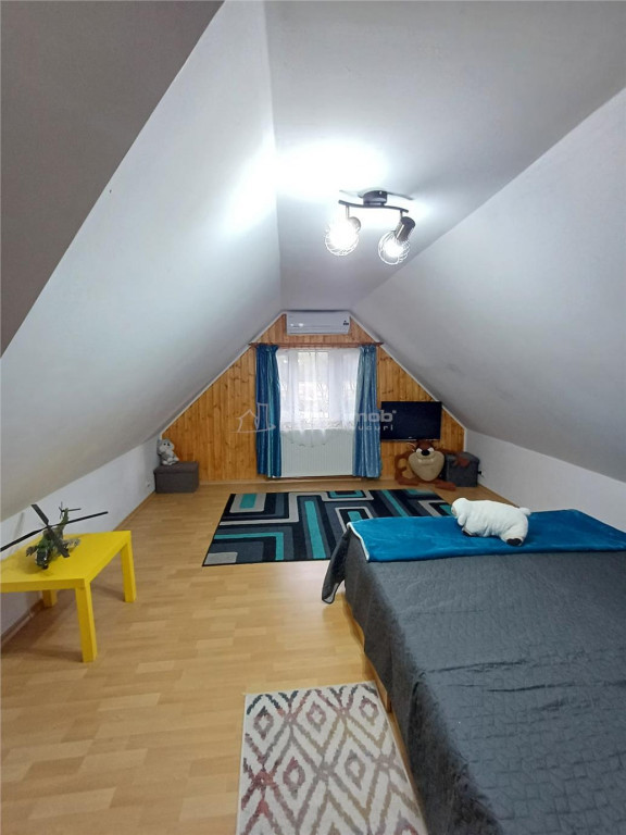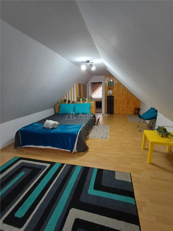 Mansarda: dormitor generos pe intreaga suprafata a casei, cu balcon si hol mdash; un spatiu intim, cu o priveliste spectaculoasa asupra satului si a naturii.