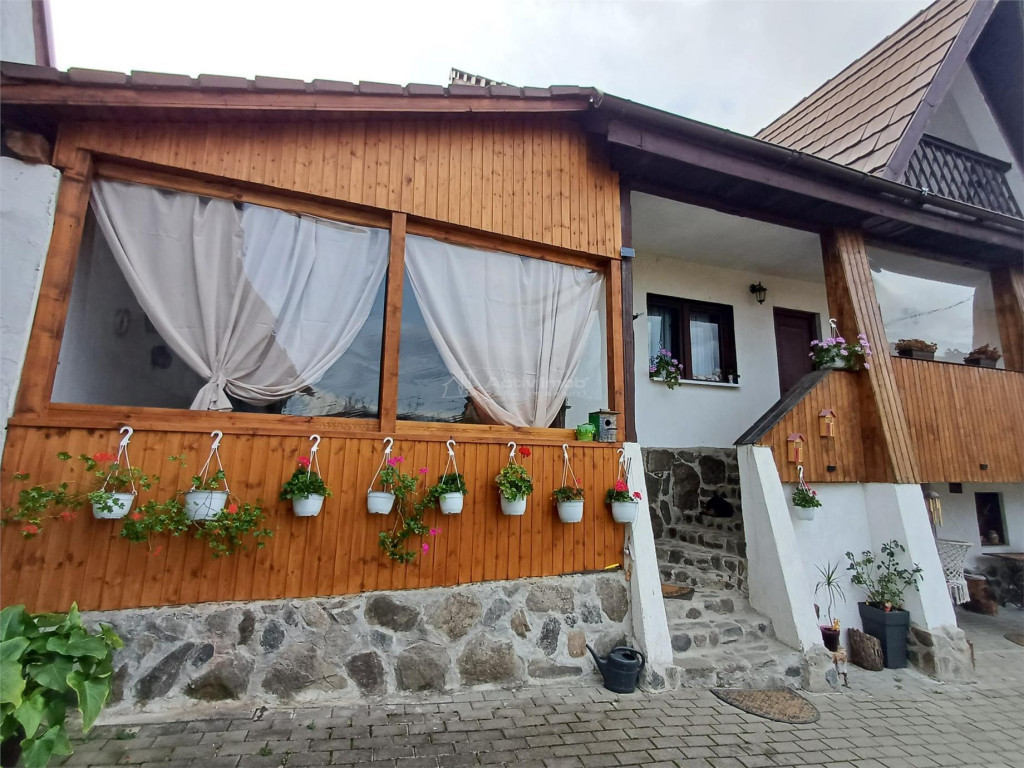 Casa a fost renovata complet, pastrandu-si esenta autentica prin materiale naturale: piatra de munte, lemn si caramida, acoperita cu tigla traditionala.